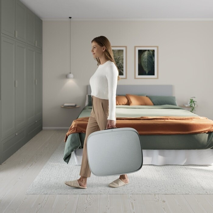 Den distinkta designen gör att Well A5-luftrenaren smälter in i interiören både i sovrummet och i vardagsrummet. Ljudnivån är som lägst vid 24 dB(A), vilket motsvarar lätt regn och därför inte stör atmosfären.
