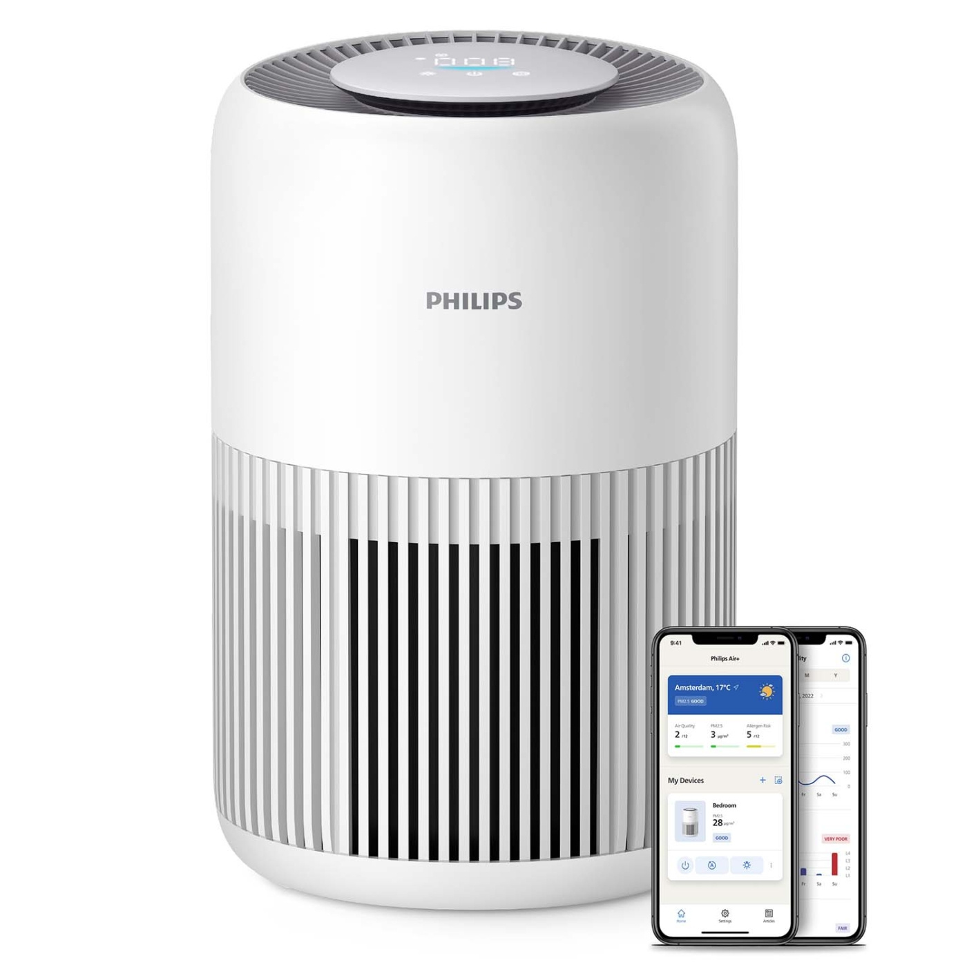 Smart schemaläggning som passar din rutin. Välj Fräsch väckning för att långsamt öka reningshastigheten innan klockan ringer. På kvällen renar Fräscht sänggående rummet noggrant innan du går och lägger dig så att du får en god natts sömn.