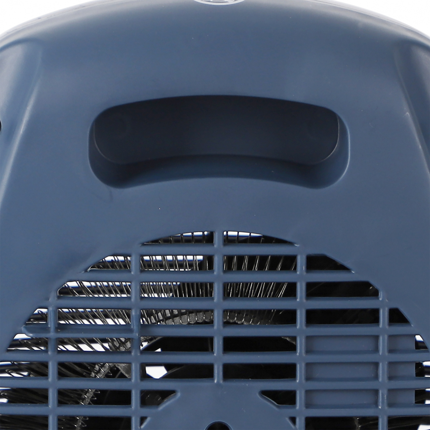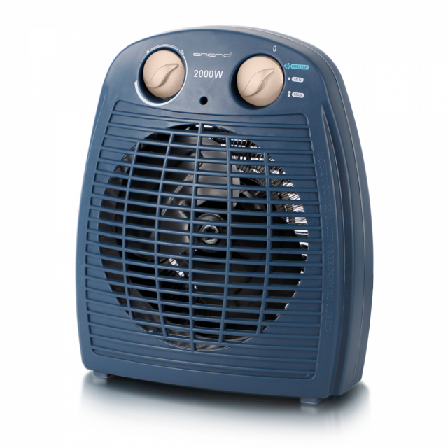 Designen är stilren och modern i blått med silverfärgade reglage. Effekten på 2000W värmer snabbt upp både större och mindre utrymmen. Indikationslampan visar att fläkten är i gång och tippskyddet stänger av fläkten om den skulle råka välta.