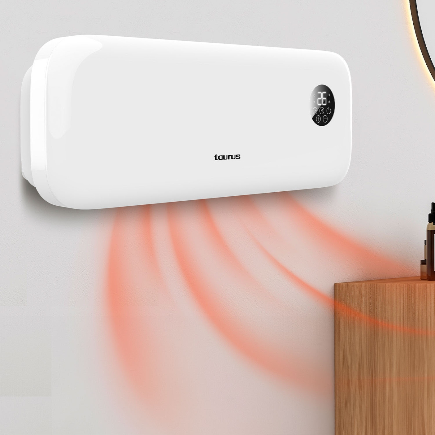Væghængt varmeblæser fra Taurus giver effektiv opvarmning med 2000W effekt og flere indstillinger.