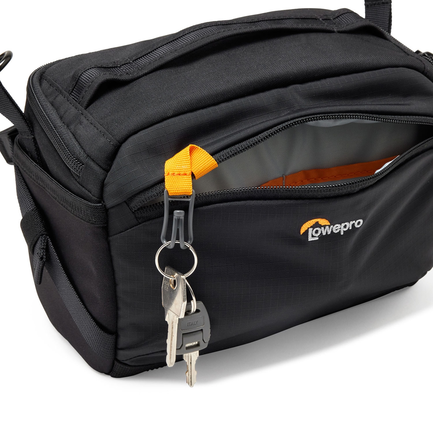 Med innovative adgangs- og organiseringsfunktioner har tasken strækbare lommer til objektivdæksler eller All Weather Cover, en frontlomme med blød volumen med nøglesnor og organiseringslommer samt en lynlåslomme på forsiden. Bagsiden har en flad, polstret lomme til ekstra opbevaring, så alt dit udstyr er pænt organiseret og let tilgængeligt.