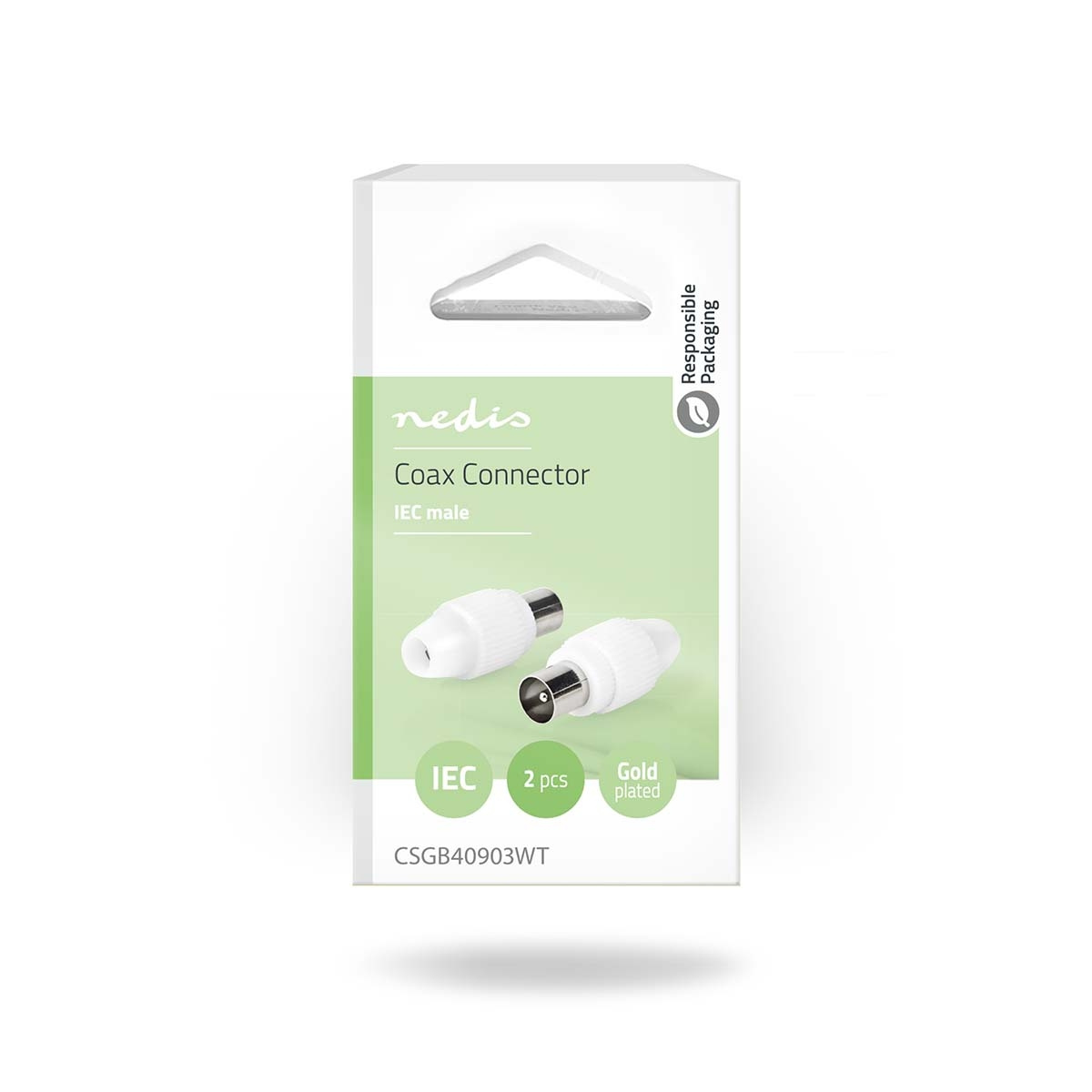 Nedis IEC (Coax) Stik | Lige | Han | Nikkelplateret | 75 Ohm | Skru | Kabeldiameter: 7.0 mm | Metal / PVC | Hvid | 2 stk. | Box
