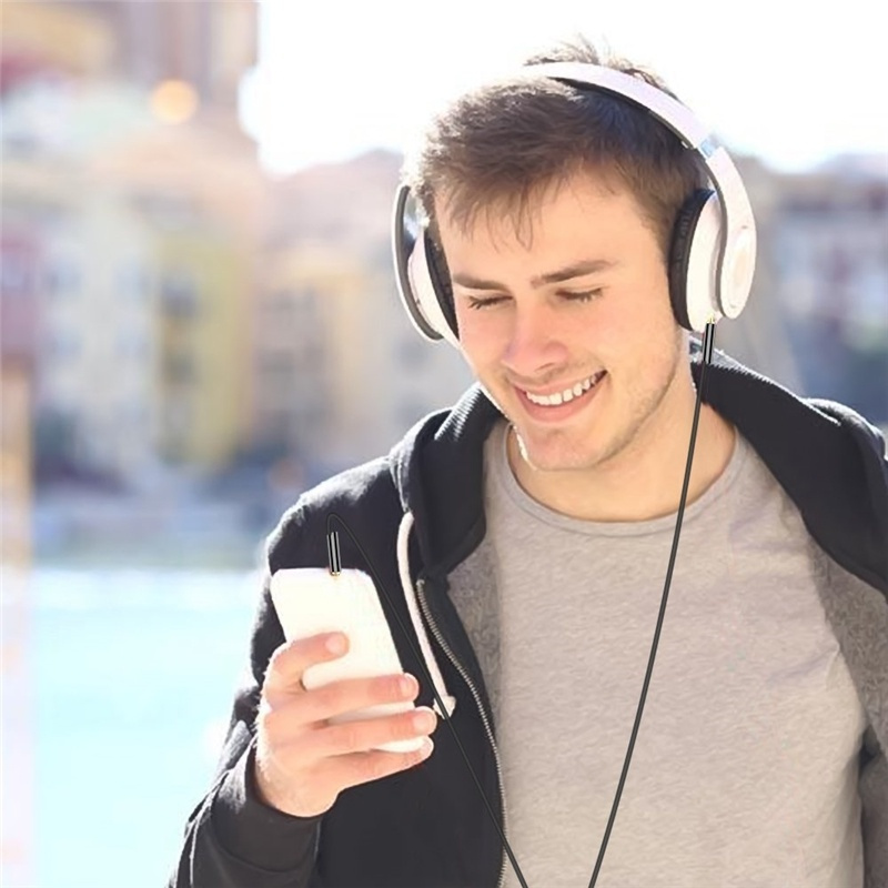 - Det guldbelagte lydkabel passer nemt ind i et 3,5 mm hovedtelefonstik, selv om enheden er i en beskyttende skal.