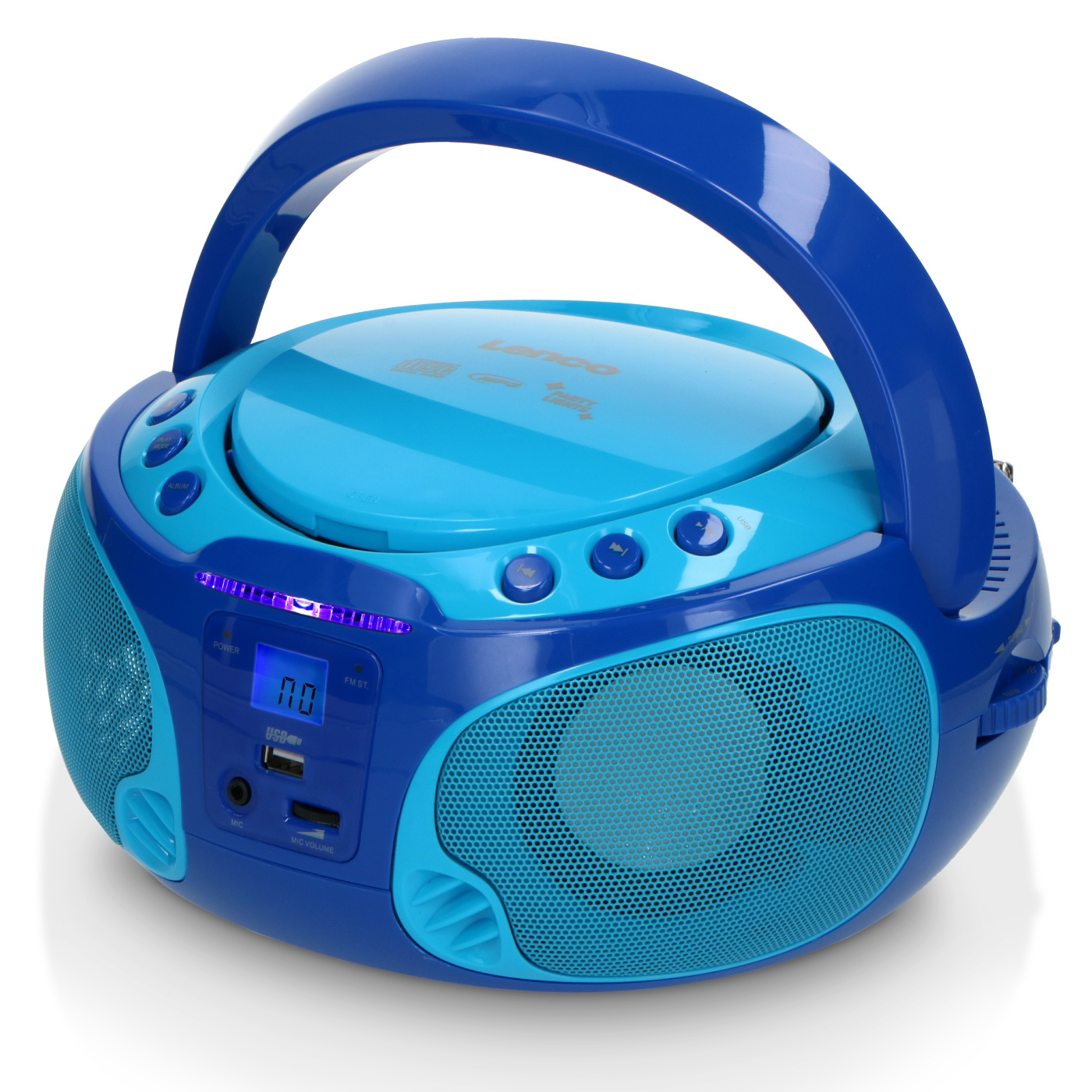 Lenco Bærbar FM-radio CD/MP3/USB-mikrofon og lyseffekter Blå