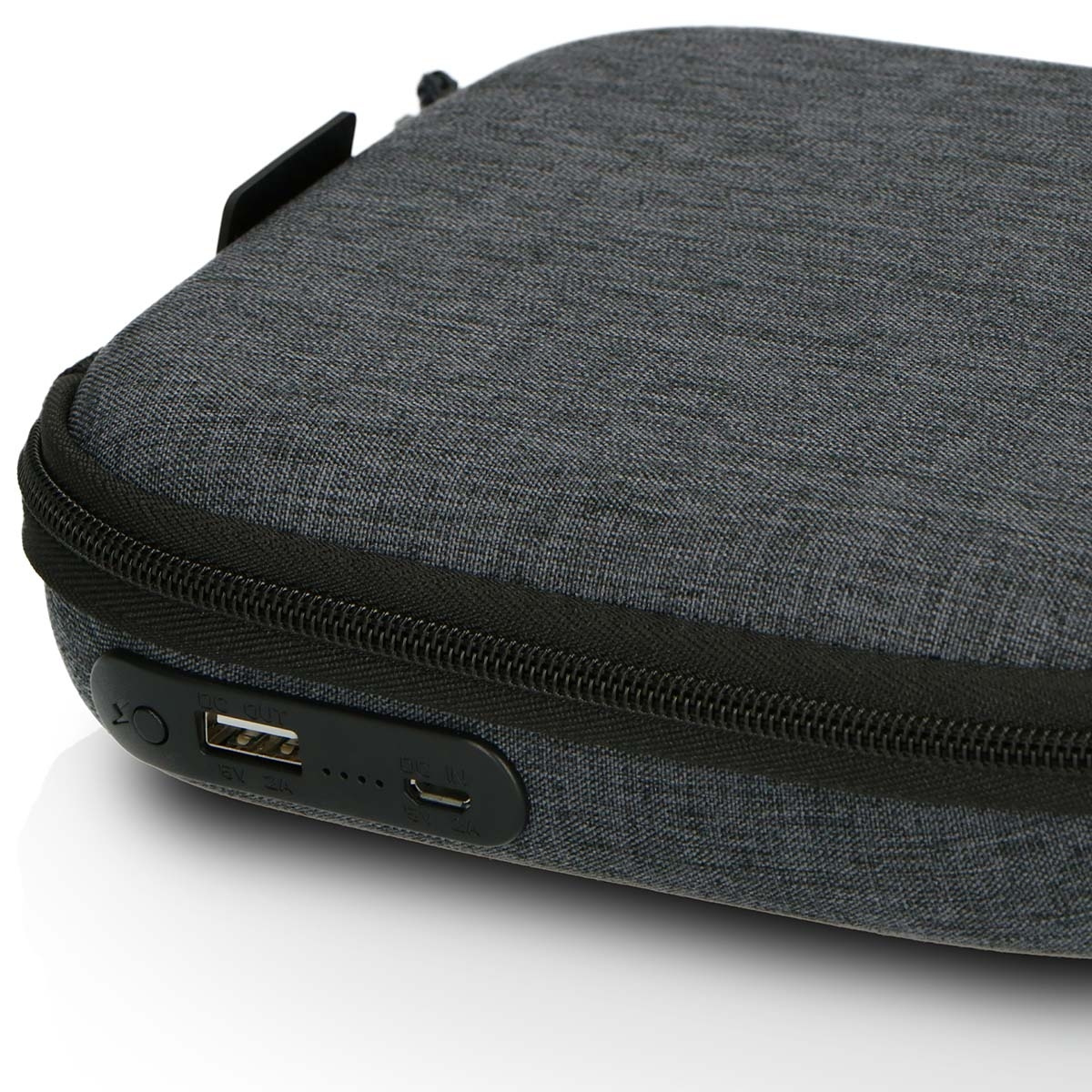 • Skræddersyet, praktisk opbevaringsetui med indbygget powerbank og genopladeligt batteri