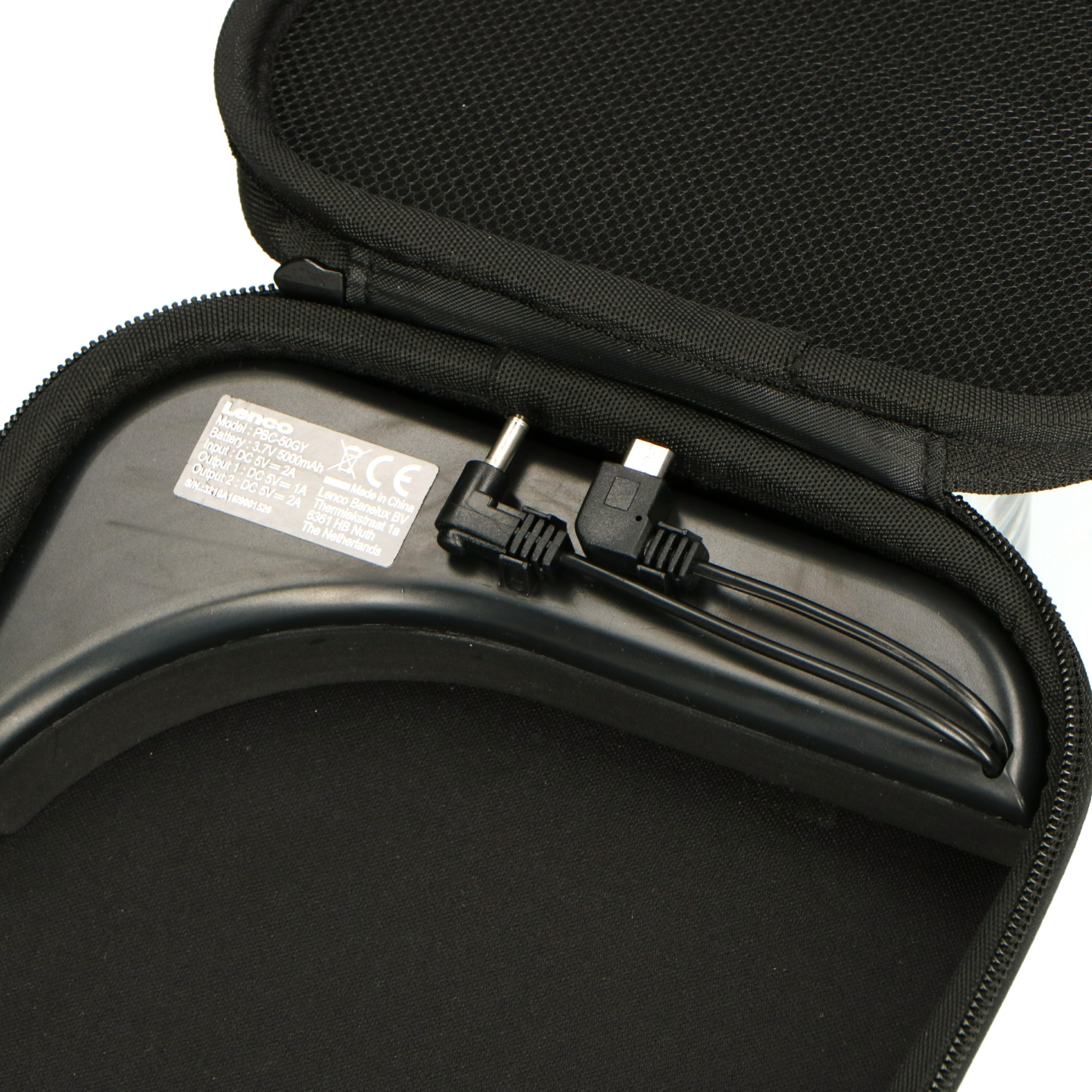 Men dette etui er mere end bare en kuffert til din cd-afspiller, det er også en powerbank på samme tid. Oplad din cd-afspiller via det mikro-USB-kabel, der er forbundet med kufferten. Via energistatusdisplayet ved du præcis, hvor meget strøm din cd-afspiller stadig har.
