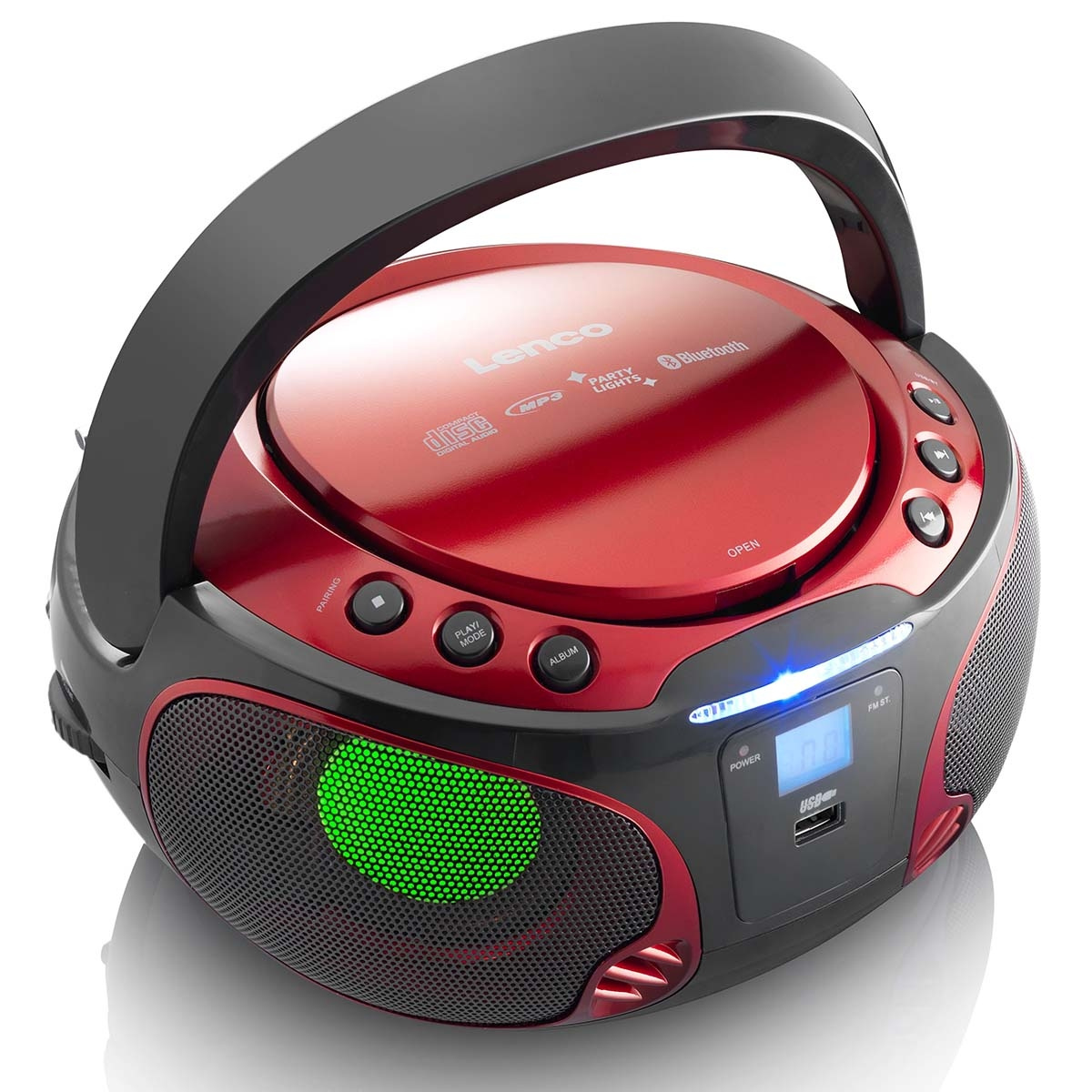 Lenco Bærbar FM-radio CD / MP3 / USB / Bluetooth-afspiller® med LED-belysning rød