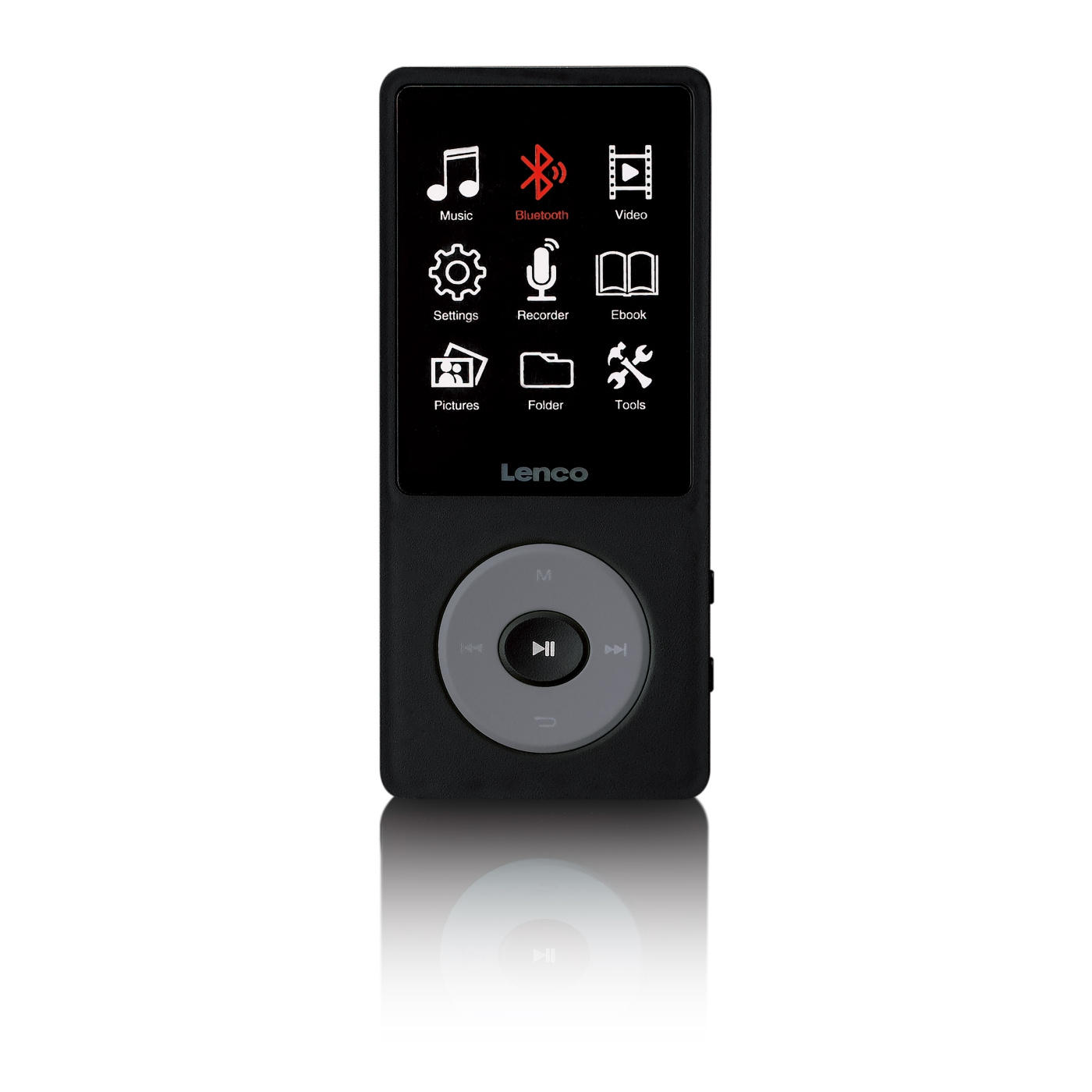 Lenco Xemio-860BK leveres med et USB-kabel og Lenco-øretelefoner. Lenco Xemio-860 fås i 3 farver: sort/grå, sort/blå og sort/lime.