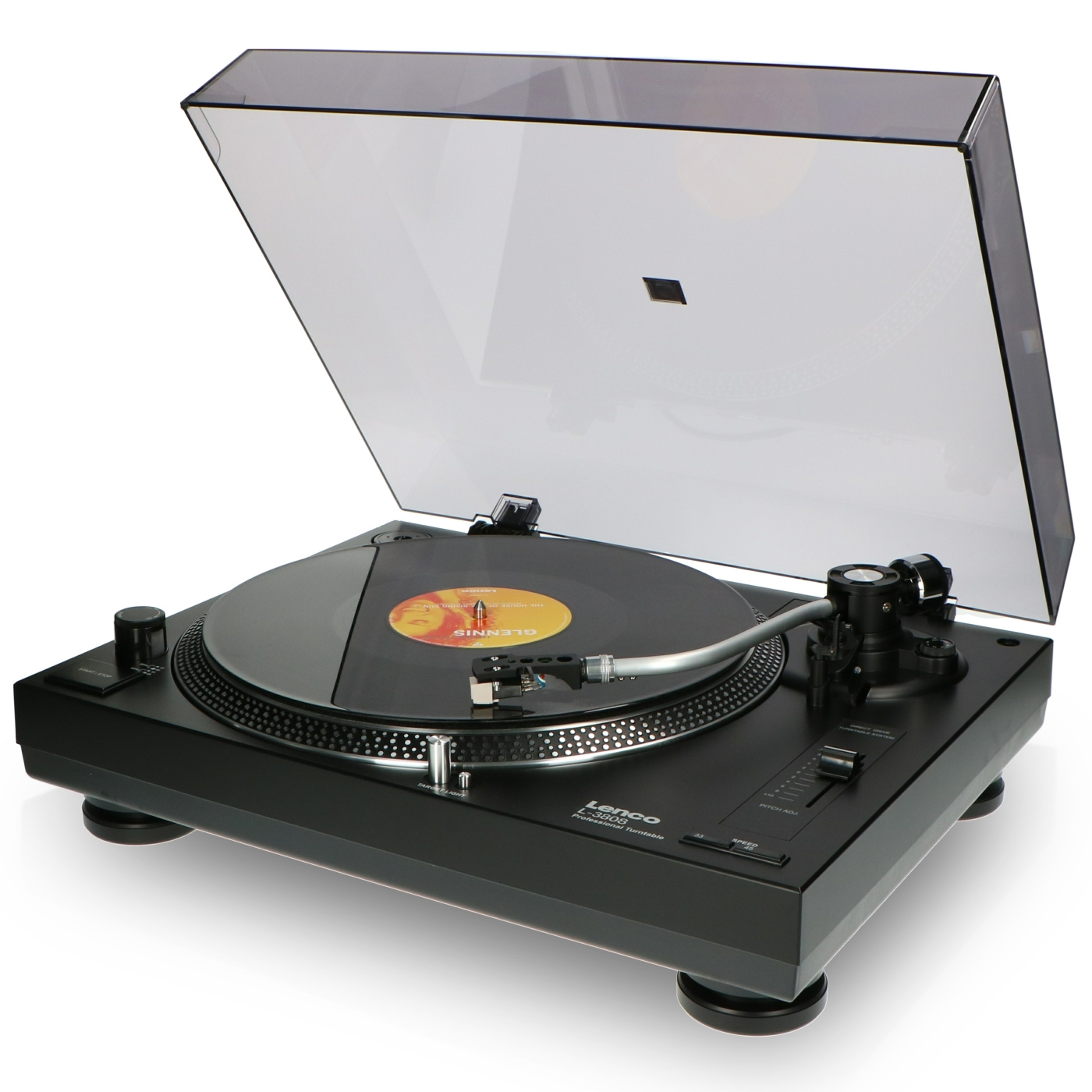 Lenco L-3808 er en professionel pladespiller med direkte drev i høj kvalitet, som er særligt velegnet til DJ's. Det direkte drev garanterer, at pladen starter med det samme, også kaldet 'quick start' Pladespilleren er udstyret med belysning for optimal betjeningskomfort og et stroboskop. Juster nemt hastigheden på din pladespiller med en variabel pitch-fader. Med en indbygget phono-forforstærker kan du tilslutte Lenco L-3808 direkte til din mixerpult eller dit stereoanlæg.