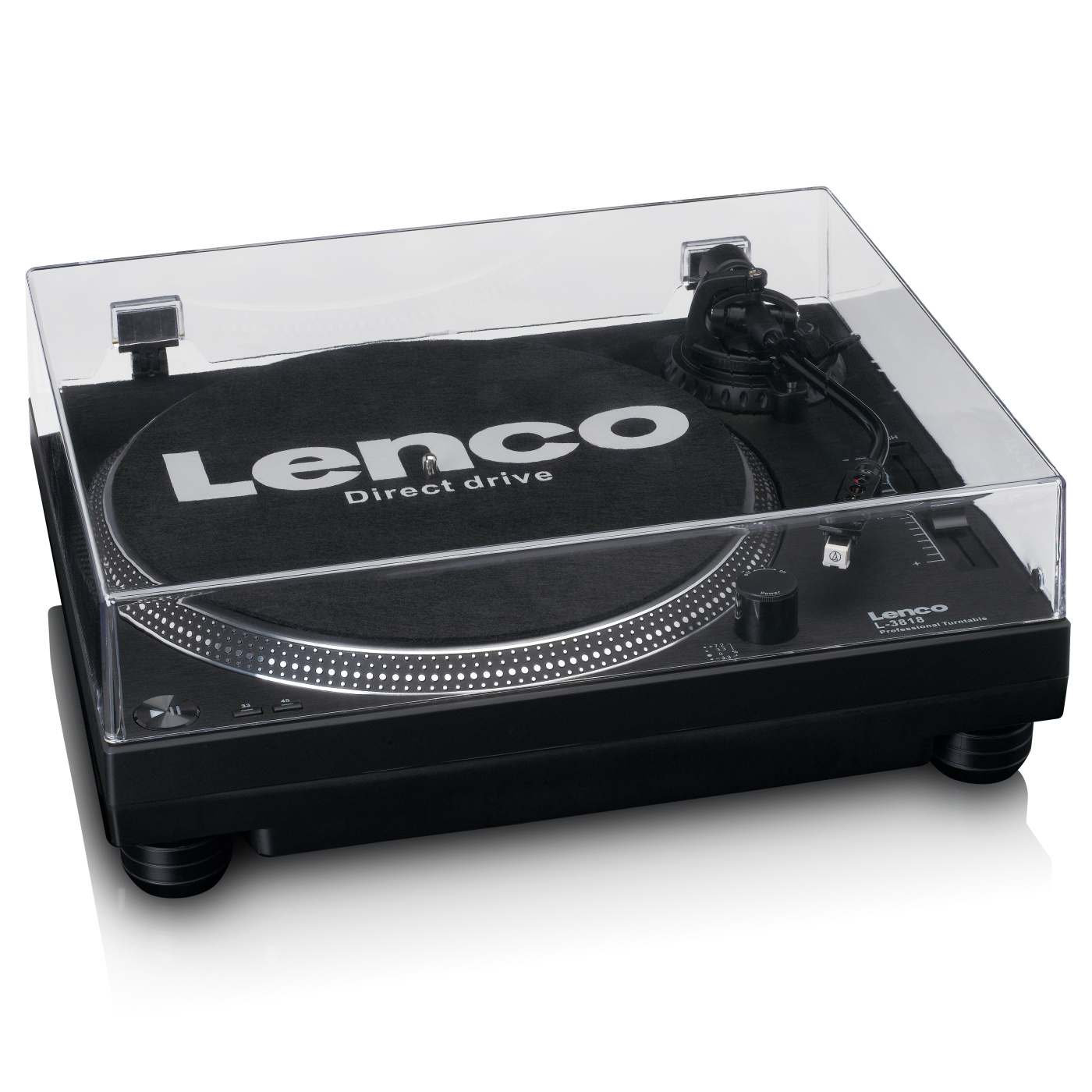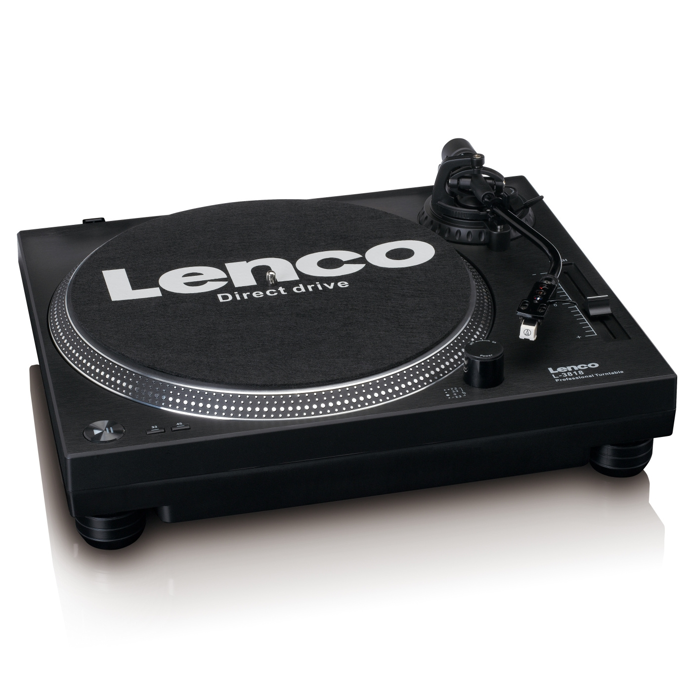 Lenco L-3818BK er en professionel pladespiller med direkte drev i høj kvalitet, som er særligt velegnet til DJ's. Det direkte drev garanterer, at pladen starter med det samme, også kaldet 'quick start' Pladespilleren er udstyret med belysning for optimal betjeningskomfort og et stroboskop. Juster nemt hastigheden på din pladespiller med en variabel pitch-fader. Med en indbygget phono-forforstærker kan du tilslutte Lenco L-3818BK direkte til din mixerpult eller dit stereoanlæg.