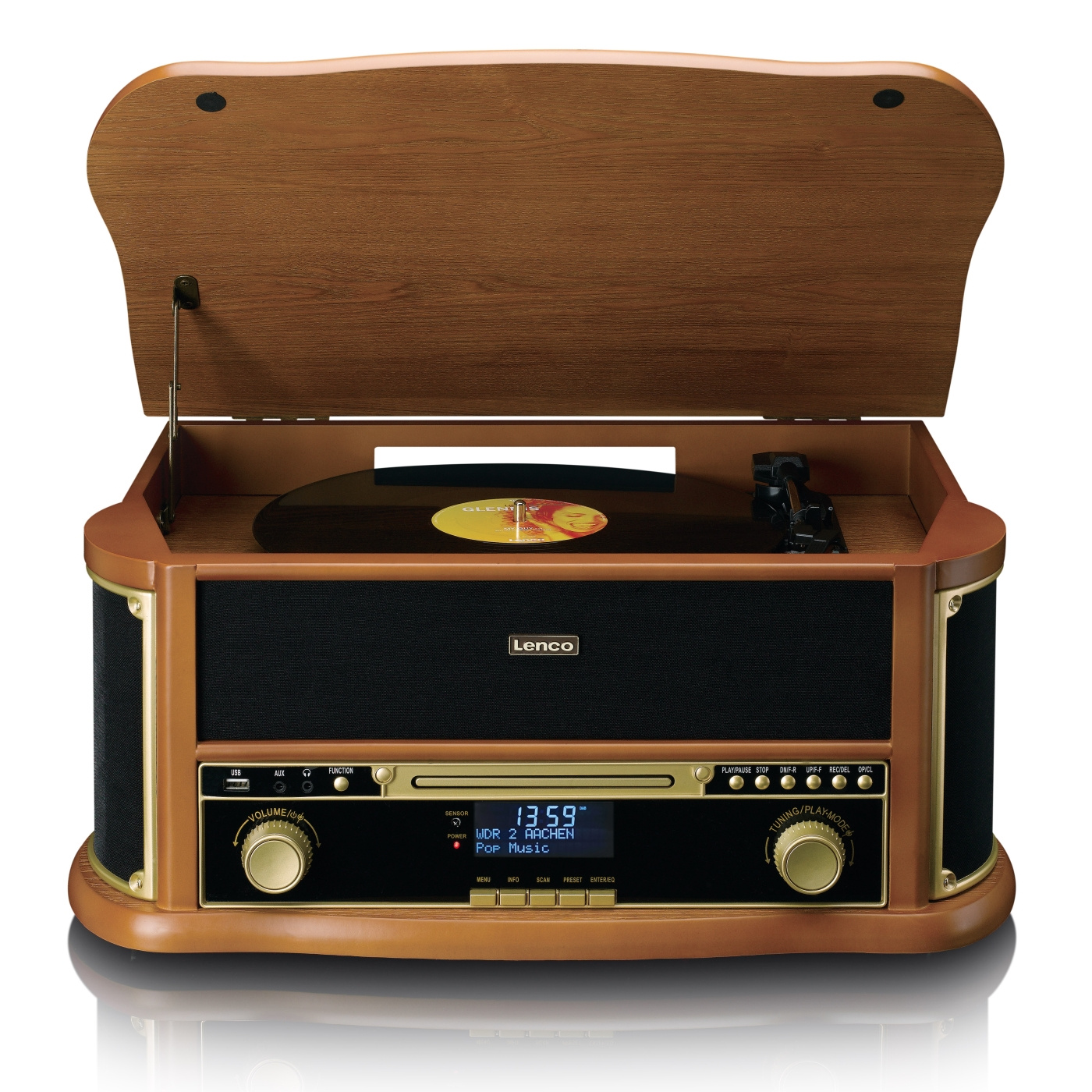 Lenco Retro-pladespiller i træ med Bluetooth®, DAB+/FM-radio, USB-kodning, cd-afspiller, kassetteafspiller og indbyggede højttalere