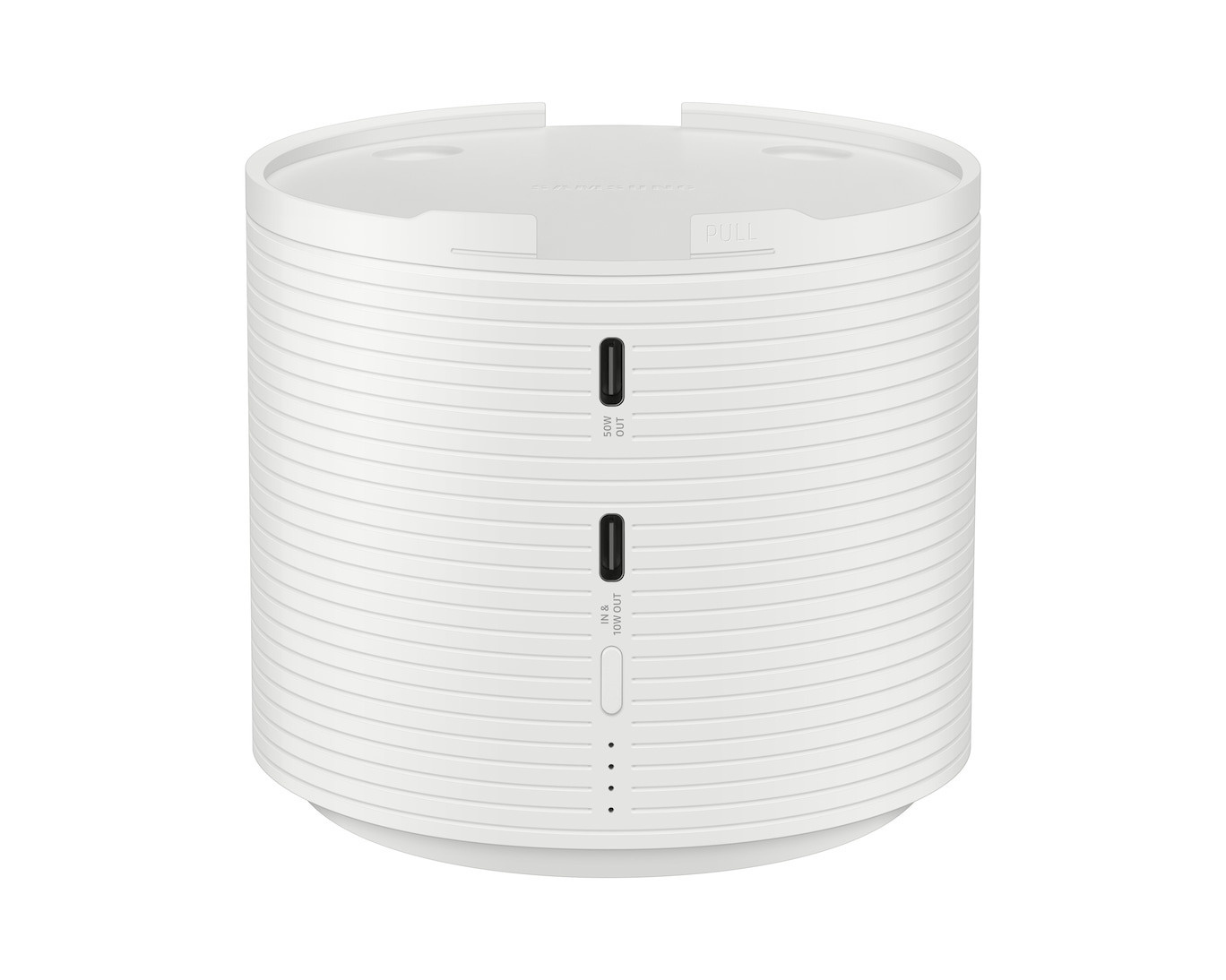 Samsung The Freestyle Battery Base giver din projektor driftstid uden strøm fra lysnettet. Battery Base understøtter desuden opladning af mobiltelefoner. Der medfølger et USB-kabel, som bruges til at forbinde projektoren til batteribasen. Den store kapacitet på 32.000 mAh giver ca. tre timers ekstra driftstid til projektoren.
