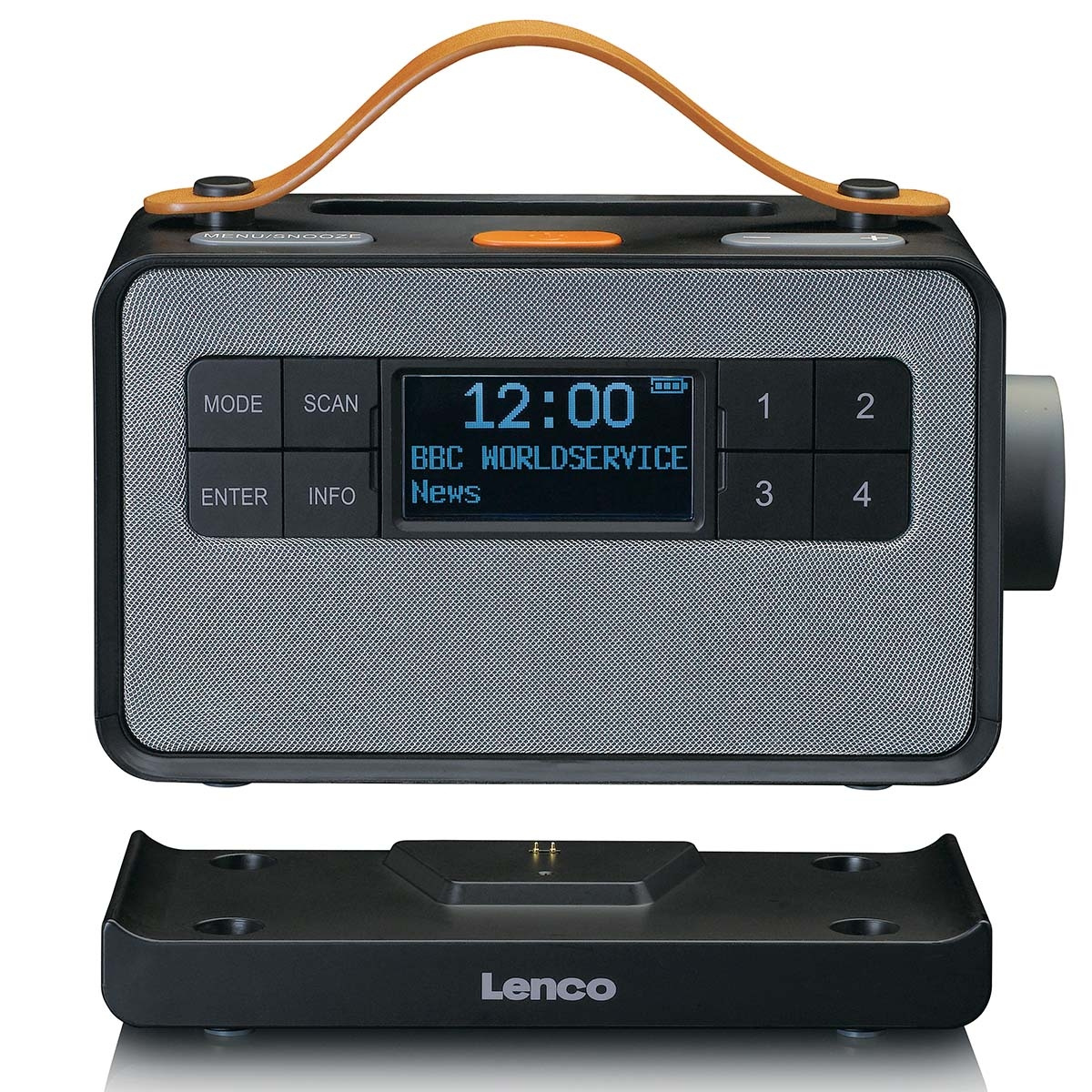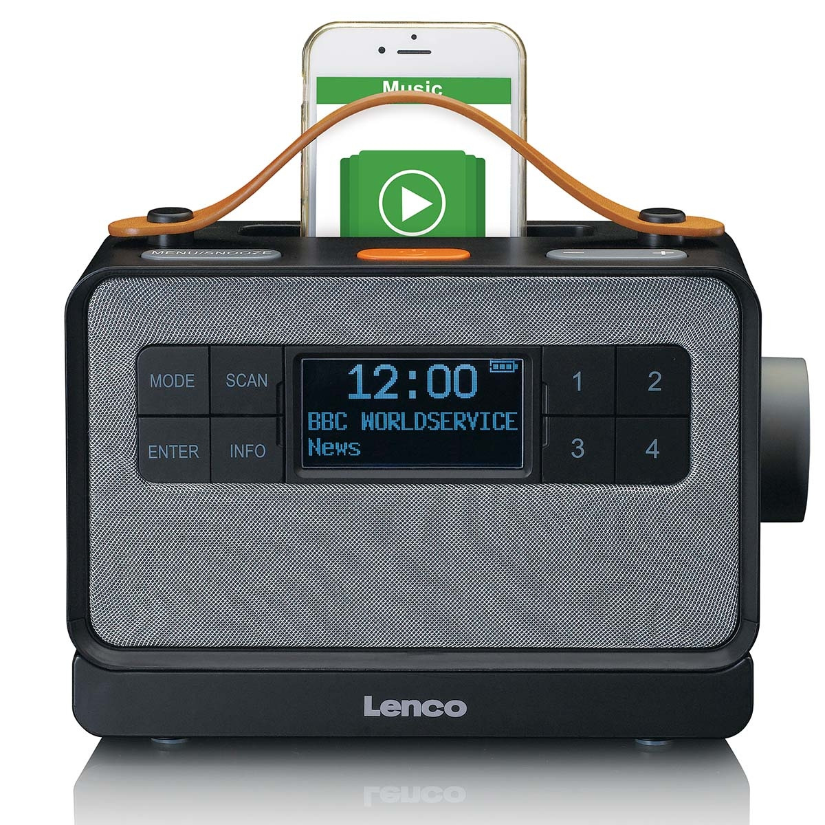 Med denne bærbare radio kan du nyde radioen med digital lydkvalitet. Radioen kan også bruges som en bærbar Bluetooth®-højttaler. Placer din telefon eller tablet i Lenco PDR-065BK's holder, og stream din yndlingsmusik. Du kan tage denne DAB+-radio med dig på farten og bruge den overalt takket være det indbyggede genopladelige batteri. Det er nemt at oplade den takket være den medfølgende ladestation.