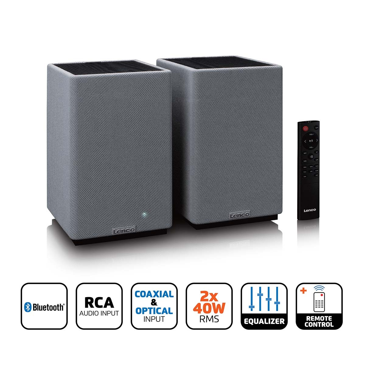 Lenco Stereo Bookshelf Speakers leveres klar til brug med fjernbetjening, RCA-kabel og AC-adapter, så opsætningen er hurtig og problemfri. Deres rene, moderne design supplerer ethvert interiør, hvilket gør dem til en stilfuld og funktionel tilføjelse til ethvert rum.