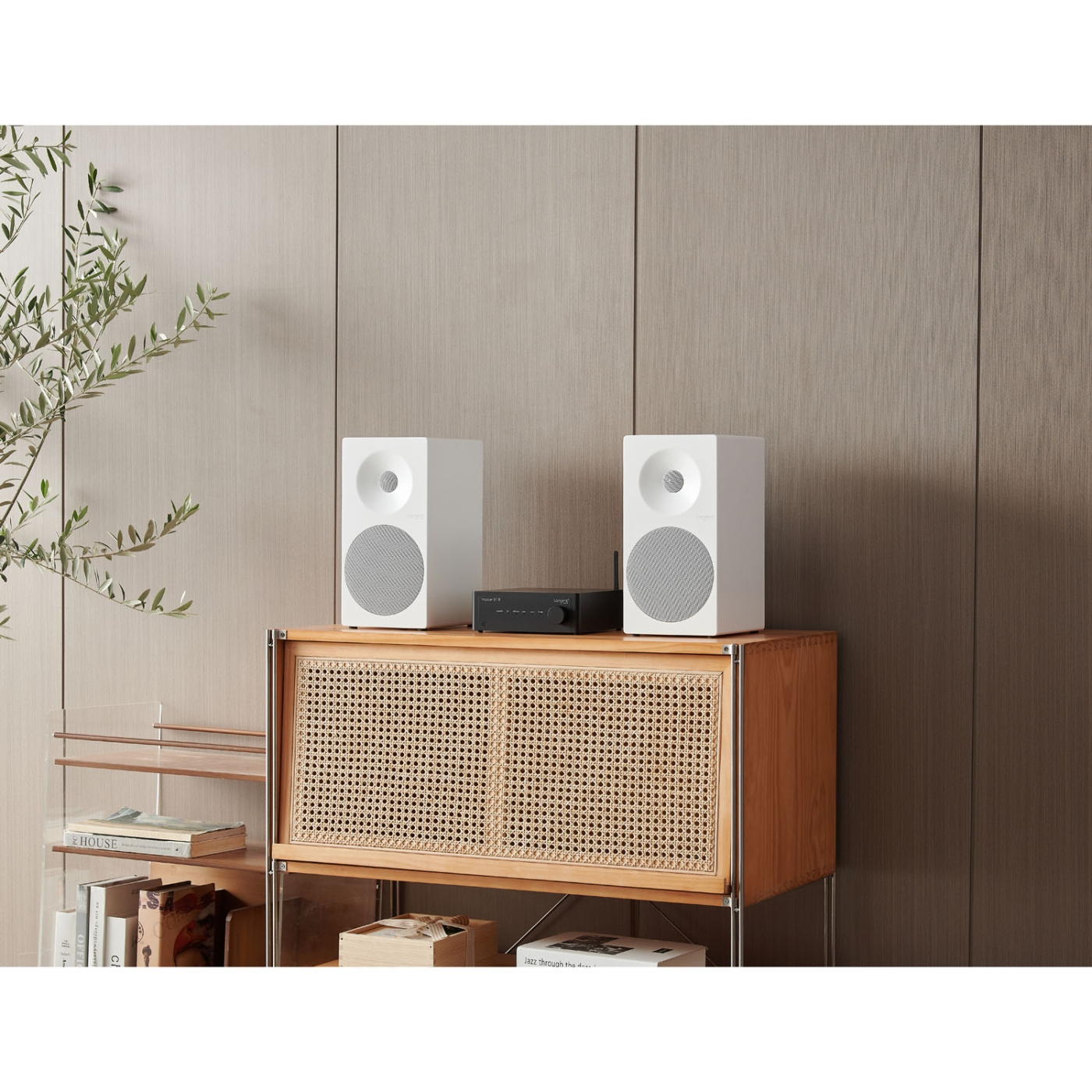 Spectrum II X4 levereras som ett par kompakta bokhyllhögtalare i vitt. Med sitt eleganta utseende och smala form smälter de naturligt in i alla moderna hem – antingen placerade fritt i rummet eller monterade på väggen med Tangents specialdesignade väggfäste.
