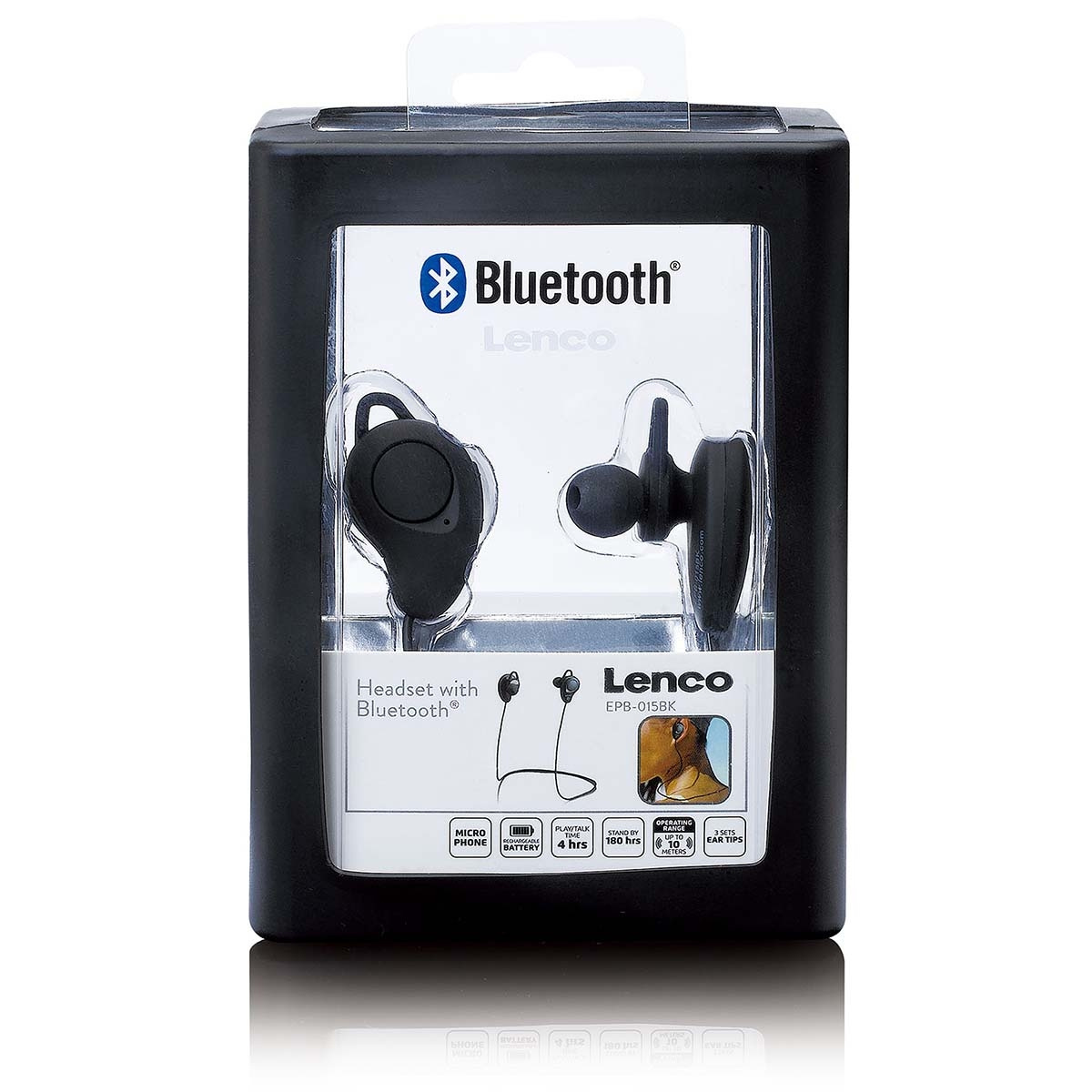 Lyt til din yndlingsmusik fra din smartphone eller tablet med Lencos EPB-015 in-ear headset. Headsettet er en trådløs Bluetooth®-enhed, så du kan bruge det hvor som helst og når som helst. Den sorte farve passer godt til ethvert outfit.