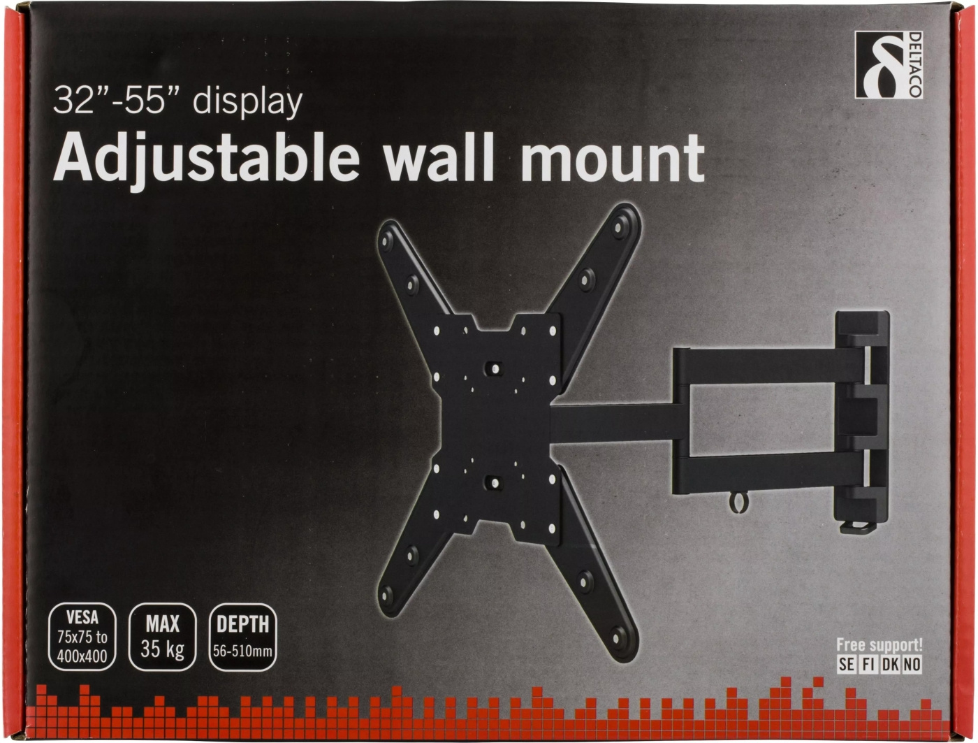 DELTACO vægbeslag til TV/skærm, 23-55", maks 35kg, VESA 75x75 til 400x400mm, 3 led, sort