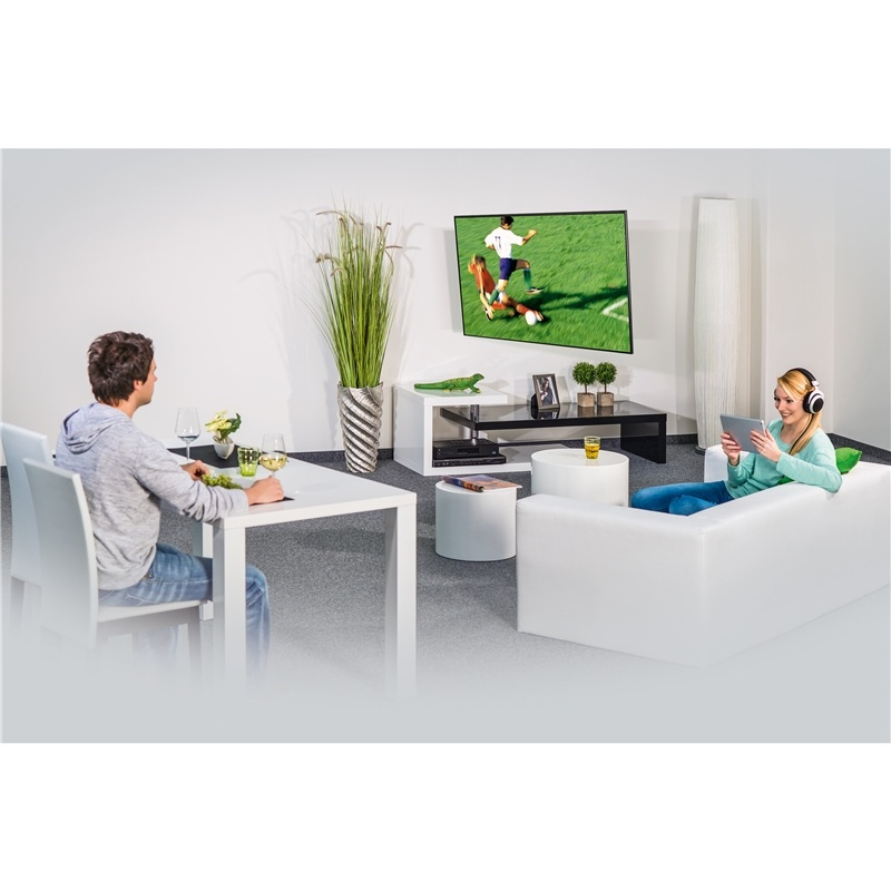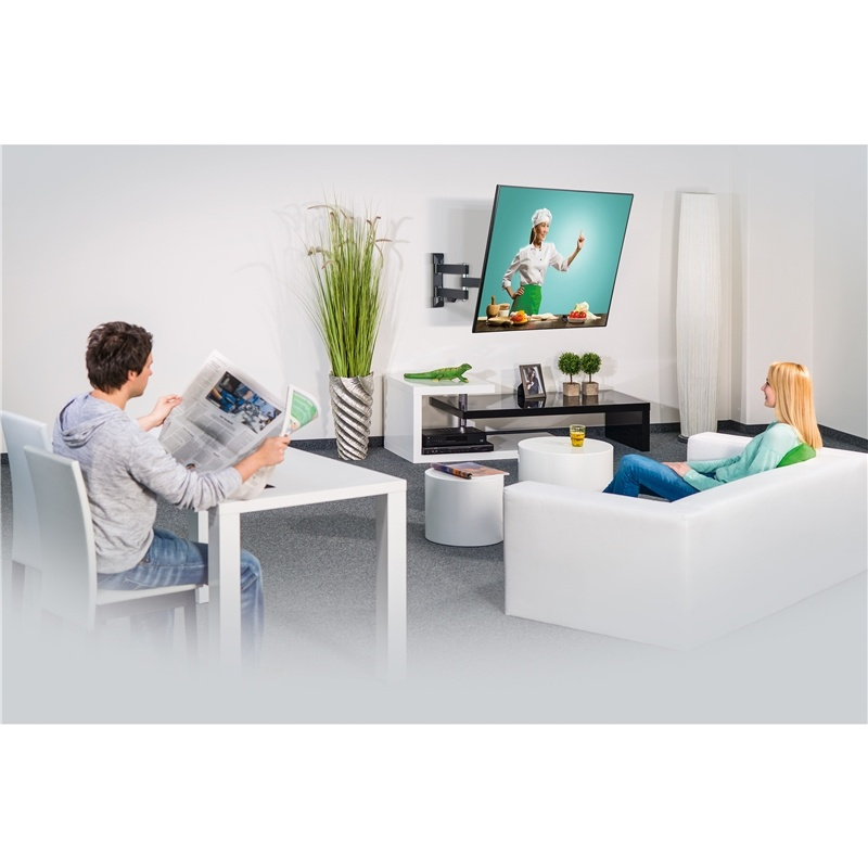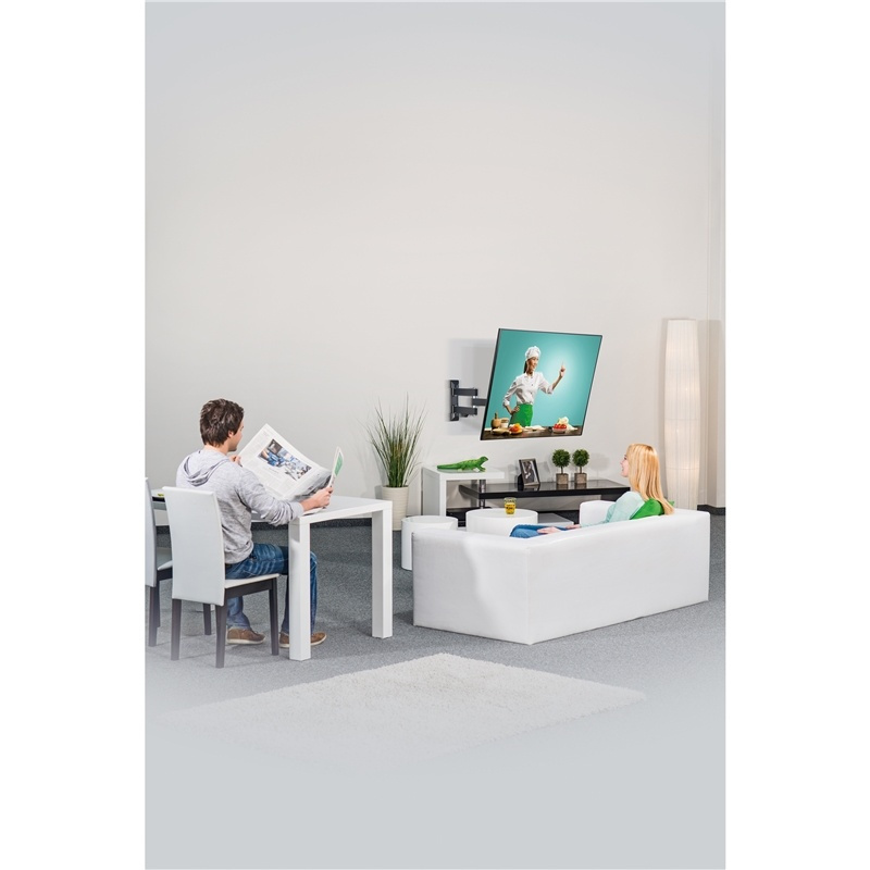 Vægbeslag til montering af fladskærms-TV med en størrelse mellem 19-48". Easy-Fix system til enkel og fuldt justerbar orientering af dit TV. Vippes mellem + 5 / -12°. Vridbar 180 grader. Understøtter VESA standard fra 75 x 75-200 x 200. kabel manager for fin kabelsamling. Monteringspladens dimensioner:. 25,4 x 6,6 cm.
