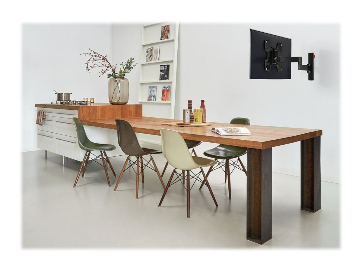 WALL 3145 TV-fäste med full rörelse har en maximal viktkapacitet på 15 kg. Nästan alla modeller av TV, från 19" till 43" (48-109 cm), kan monteras på väggen med WALL 3145. Den maximala vridvinkeln är 180° och max. lutningsvinkeln är 20°. Finns även i vitt.