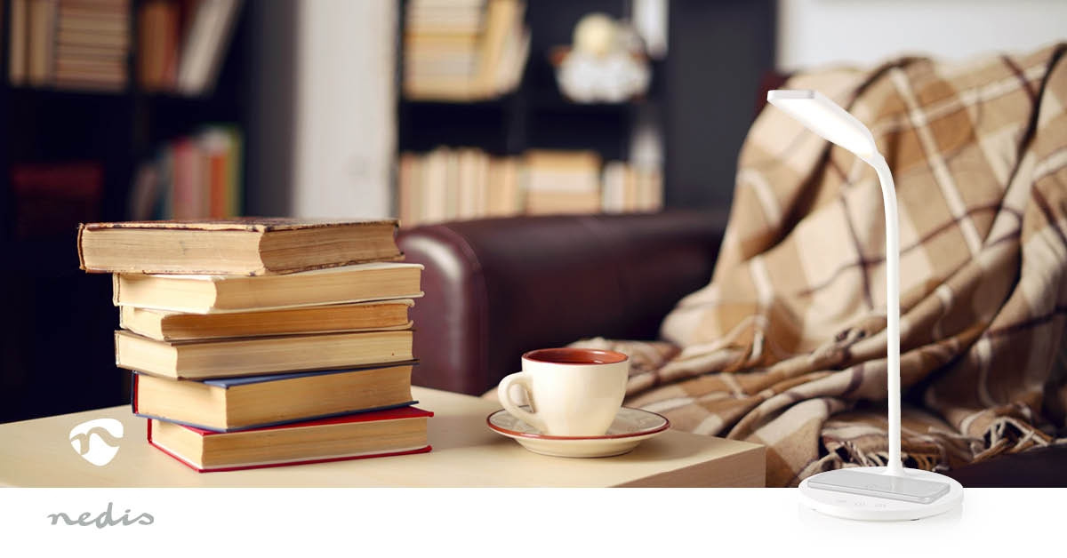 Nedis LED-lampe med trådløs oplader | Dimmer - Til produkt | LED | 15 W | Med dæmpning | Cool Hvid / Naturlig Hvid / Varm Hvid | 2700 - 6500 K