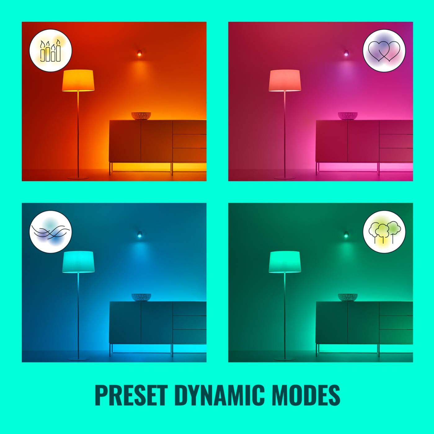 Välj från en palett med miljontals ljusfärger för att skapa en inbjudande atmosfär i ditt hem. De subtila skillnaderna i våra dynamiska ljuseffekter påverkar din omgivning positivt