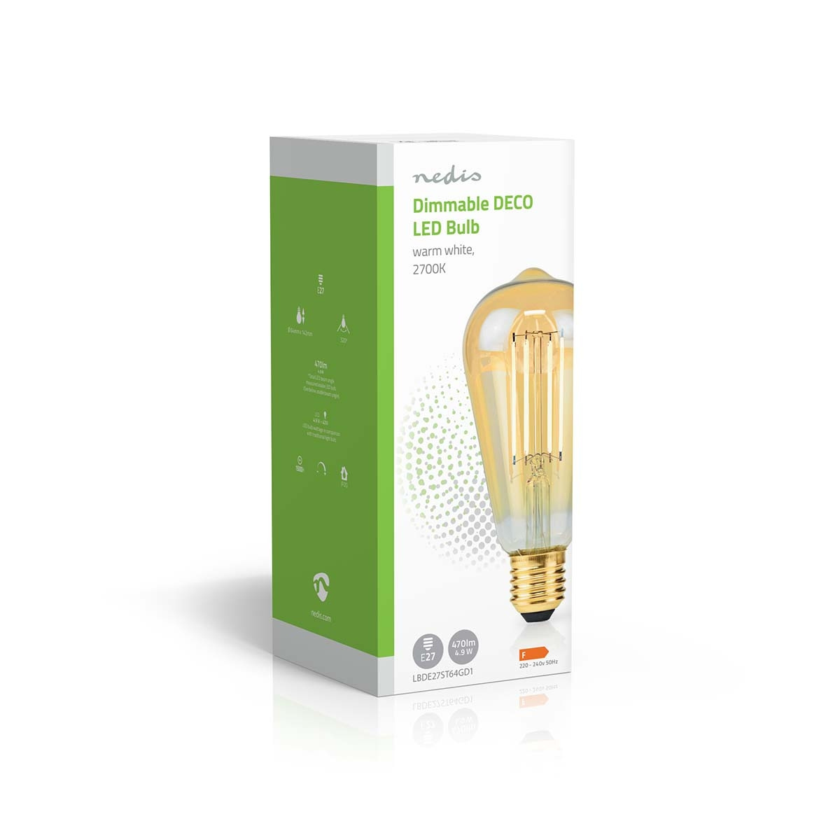 Nedis LED glødepære E27 | ST64 | 4.9 W | 470 lm | 2100 K | Dæmpbar | Ekstra varm hvid | Retro stil | 1 stk