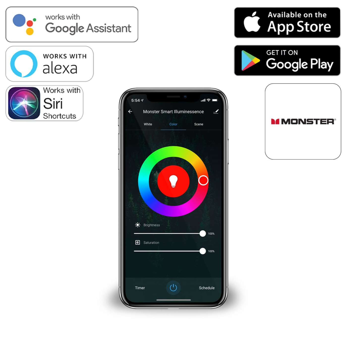 • Styr dina lampor från vilken plats som helst: Använd Monster Smart App för att ansluta direkt till dina strips och göra ändringar via din telefon från vilken plats som helst, när som helst på dygnet. Vår app finns tillgänglig på Apple App Store och Google Play.