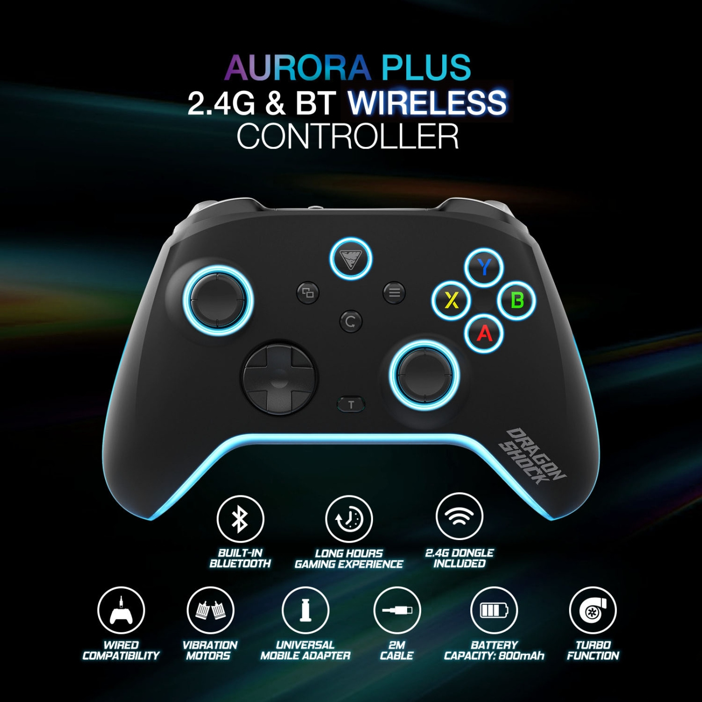 Forbedr din spiloplevelse med Aurora+ controlleren, der er designet til problemfri ydeevne på tværs af forskellige platforme. Denne controller giver frihed med 2.4G trådløs forbindelse og Bluetooth-teknologi, så du kan nyde at spille uden besværet med ledninger. Dens ergonomiske design kombineret med vibrationsmotorer sikrer en behagelig og fordybende spiloplevelse. Derudover giver RGB-belysningsfunktionen dig mulighed for at tilpasse din opsætning, så den passer til din stil.