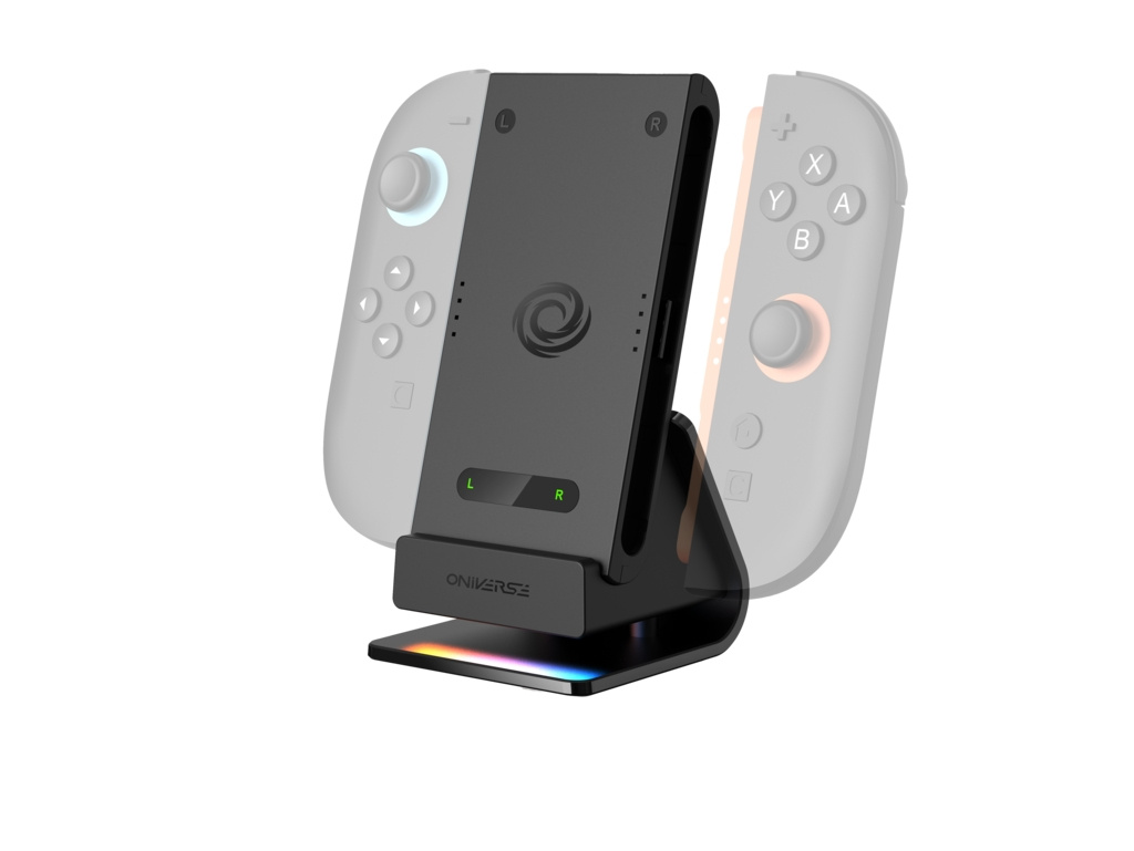 Denne opladningsstation, der er kompatibel med Nintendo Switch™ 2, giver dig mulighed for at oplade 2 Joy-Cons™ på samme tid, hvilket er perfekt til familie og venner. Holdegrebet kan fjernes, så du kan bruge dine Joy-Cons™ som controller. Du kan derefter nemt sætte dem tilbage på basen for at oplade dine Joy-Cons™. Strømforsyningen tilsluttes direkte til docken med et USB-C®-kabel. Det unikke design og den animerede LED vil forbedre dit miljø.