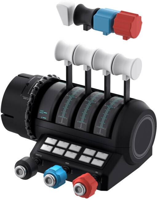 VelocityOne Flight har en 'yoke-controller' og et separat kontrolpanel med gashåndtag og trimhjul. Selve controlleren er en fuld 180-graders roterende softmotion-kontrolenhed. Du finder i alt 12 analoge kontrolhåndtag, to POV-hattekontakter og to firevejs-hattekontakter.