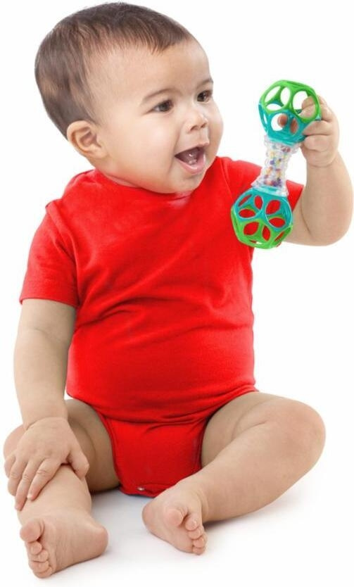 OballEn farvestrålende rangle med minikugler i enderne, lige til at lege med. Den glatte, bløde overflade og de fleksible åbninger er ideelle for små fingre at gribe fat i. Legetøjet kan rystes og tygges og indeholder ikke BPA eller andre skadelige stoffer. De regnbuefarvede rangleperler er en fryd for små øjne og giver lyd fra sig, når de rystes. Legetøjet kan holdes i hænderne eller rulles rundt på gulvet. Let at tage med i barnevognen eller babytasken.