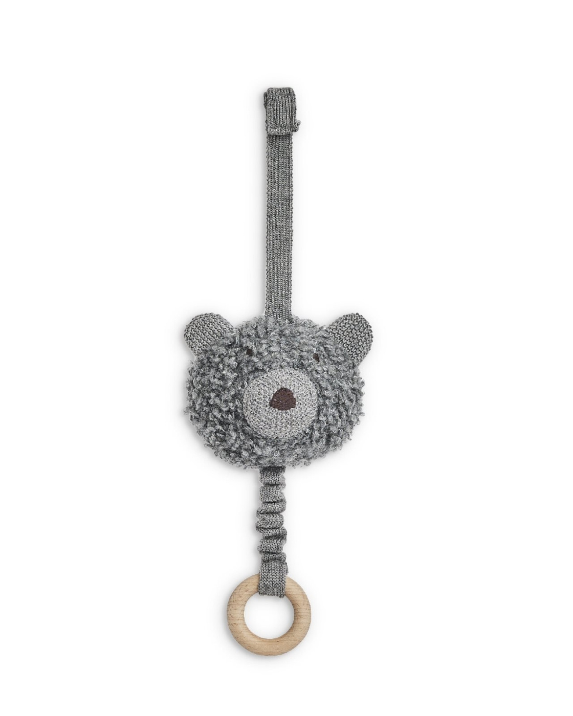 Oplev den charmerende Music Mobile by Smallstufffremstillet af blød, gråmeleret uldbouclé. Denne dejlige musikbamse har fine detaljer og måler 11 x 20 cm. Sæt den nemt fast på sengen, vuggen eller barnevognen med den strikkede velcrosnor. Den er fremstillet af merinould og PET-fyld fra genbrugte plastflasker, så den er både miljøvenlig og kan vaskes med en fugtig klud. Nyd den beroligende vuggevise-lyd, og vær sikker på, at den er testet for farlige stoffer og opfylder STANDARD 100 by OEKO-TEX®.
