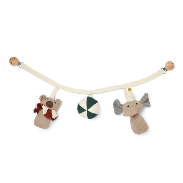 Oplev Aston barnevognskæden fra Nuurooen dejlig tilføjelse til din babys barnevogn. Dette cirkusinspirerede legetøj har charmerende figurer med små klokker indeni, som stimulerer dit barns sanser. Den er lavet af 100 % økologisk bomuld med genbrugsfyld og kan nemt sættes fast på barnevogne eller andre steder. Perfekt til sjov på farten!