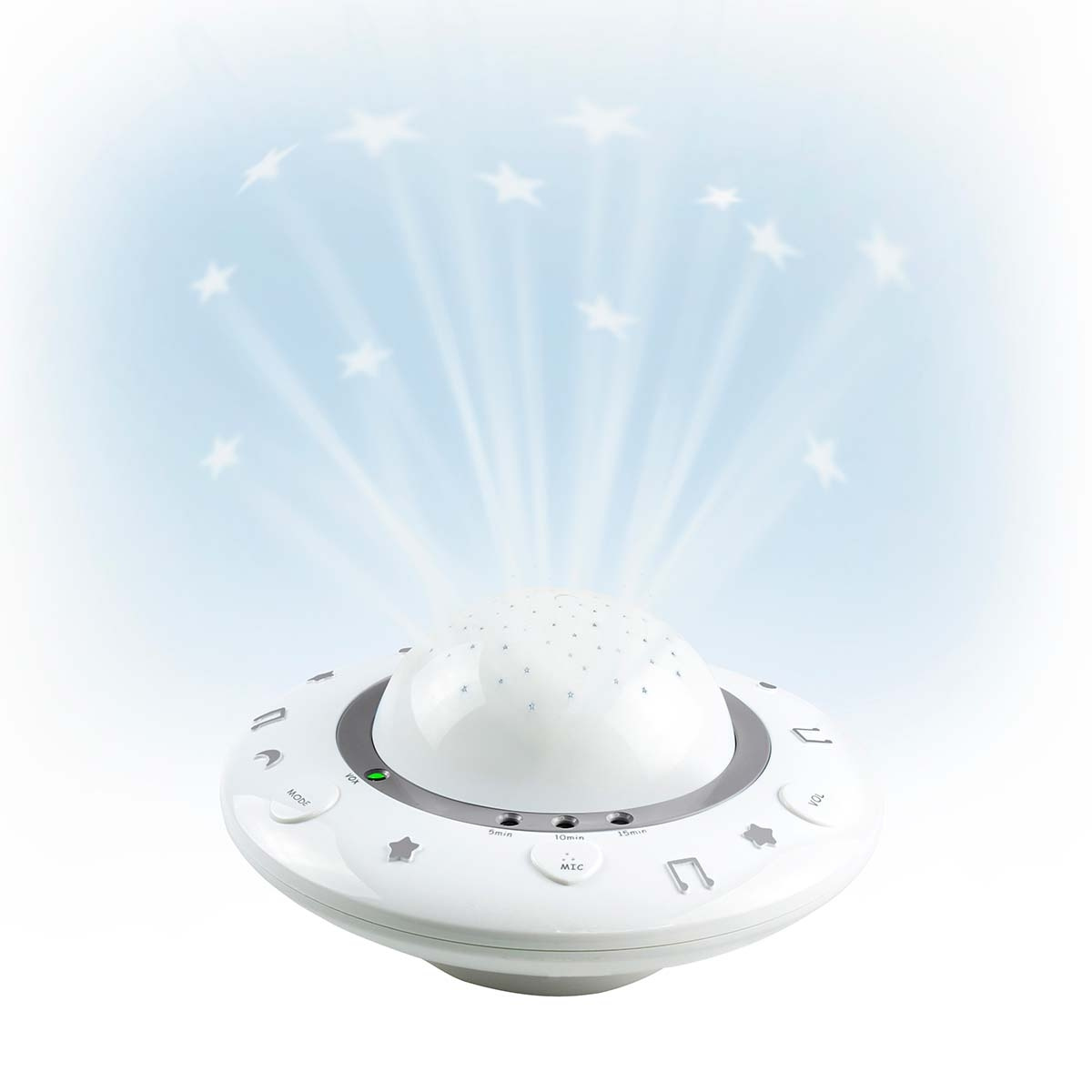 Som alle andre små er dit barn fascineret af billeder og lyd med blød musik og smukke billeder. Du kan tilbyde din baby komfort og ro. BC-125GS er en stilfuld sovedyne og projektor, som lader dig projicere smukke og farverige billeder op i loftet på dit barns værelse, mens der lyder stille vuggeviser i baggrunden. At falde i søvn bliver en regelmæssig vane