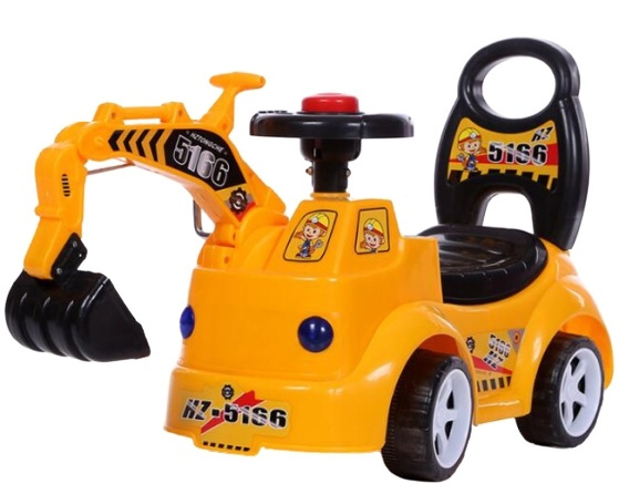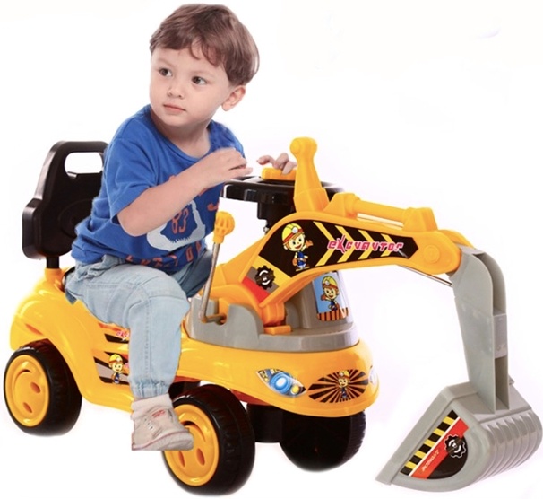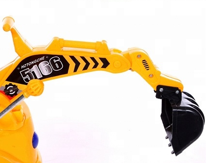 Grävmaskinen har en rörlig arm som man kan styra samt en ratt. En rolig leksak till en maskinfantast!