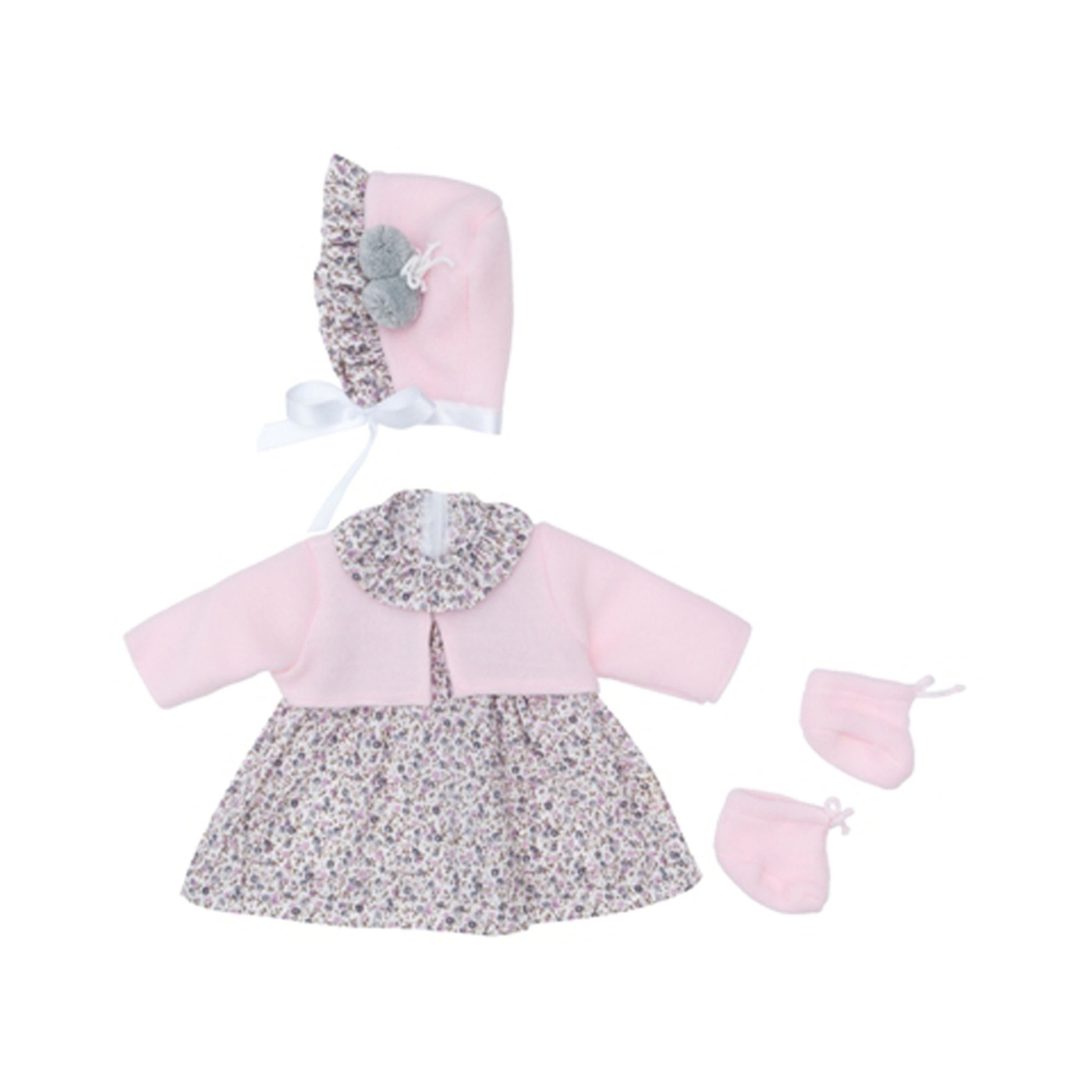 Klæd din 46 cm store pigedukke på med stil med Leonora fra ASI. Dette charmerende sæt indeholder en blomstret kjole, en kort lyserød strikket trøje, sokker og en matchende hue. Perfekt til fantasifuld leg og til at forbedre din dukkes garderobe. Materialer af høj kvalitet sikrer holdbarhed og perfekt pasform.