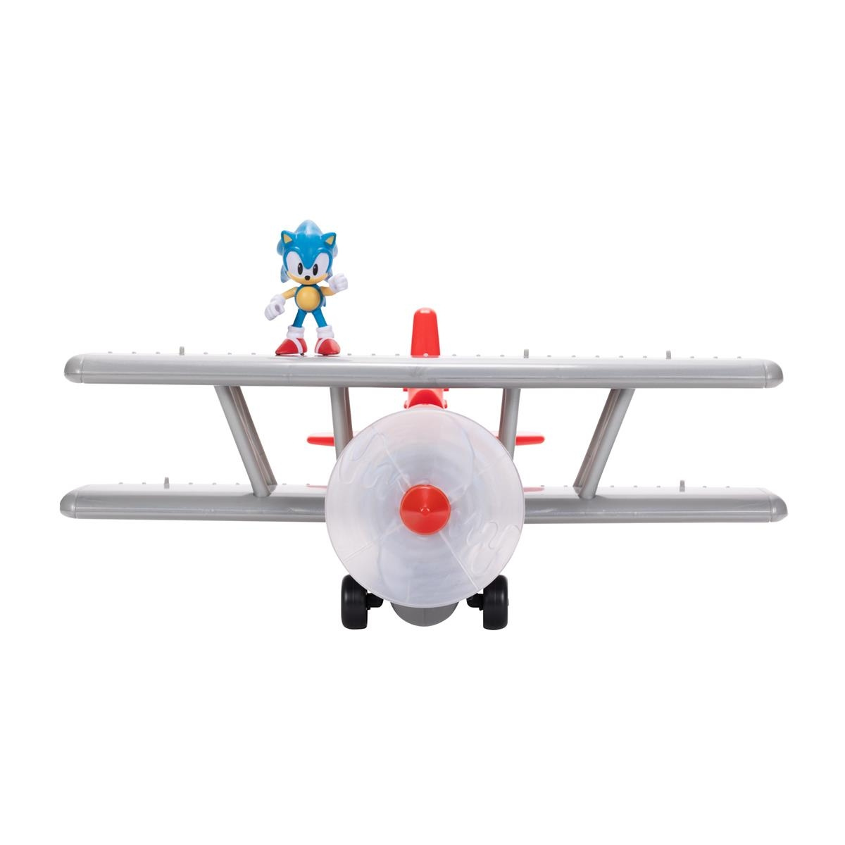 Flyv ind i Sonics spændende verden med vores Tornado Biplane-legesæt! Aktiver klassisk Sonic-musik fra videospillet med et tryk på en knap. Oplev dynamisk bevægelse med en motoriseret, roterende propel og en lysende flamme, hver med tilhørende lydeffekter. Der er endda flyvelyde, når flyet svinger til venstre og højre, og frit bevægelige hjul for at øge autenticiteten. Der er 6 lydeffekter, som kan inkorporeres i legen! Tornado Biplane indeholder en 2,5-tommers Sonic-figur, og vingerne har pinde til at fastgøre yderligere figurer til endeløse kreative legemuligheder. Bragt til dig af JAKKS Pacific.