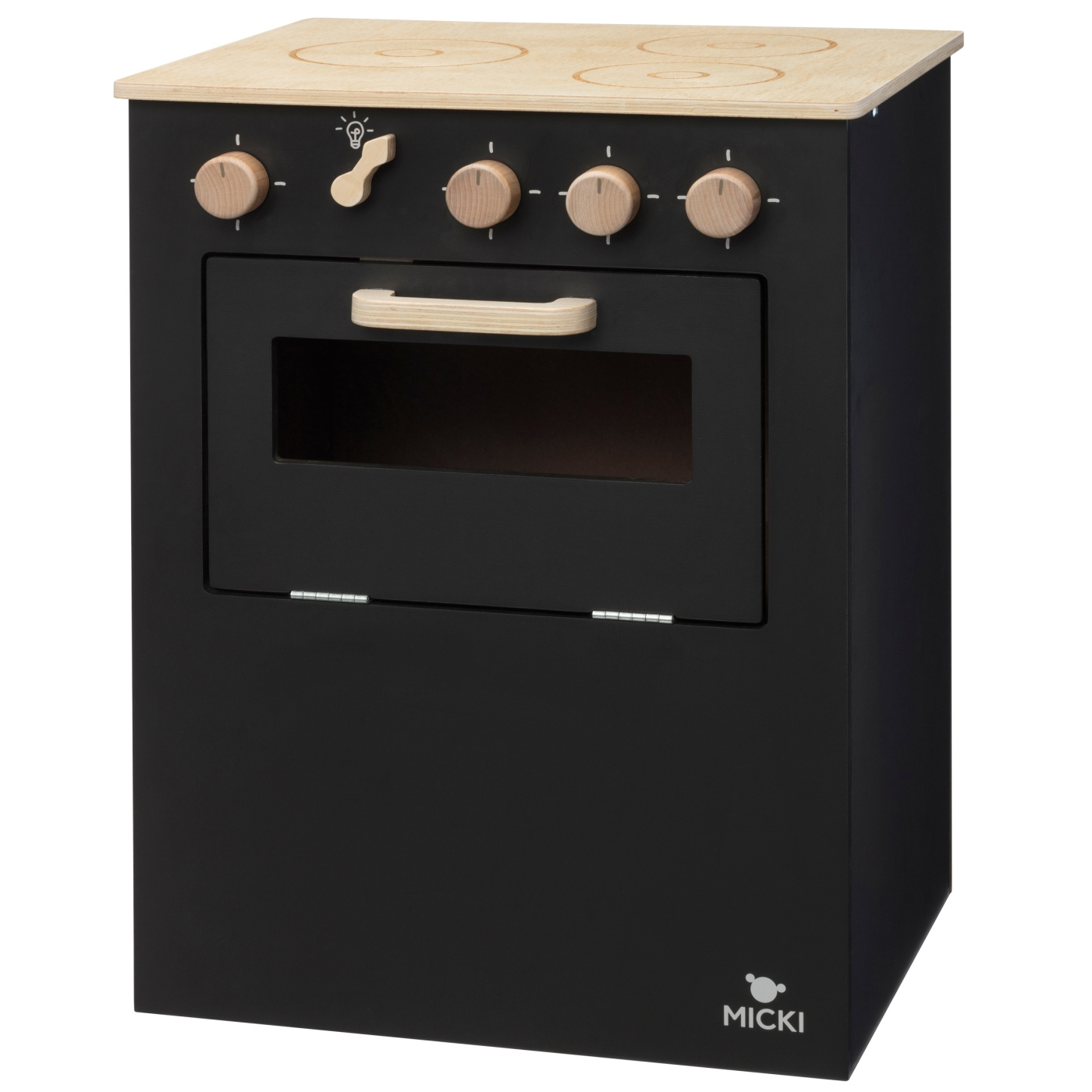 Den genuina premiumspisen i trä har graverade detaljer i lekfulla illustrationer som dekorerar hällens spisplattor. Leksaksspisen har tre plattor, ugnsluckan är öppningsbar och har vridbara, trärena vred med lekfull klickfunktion. Spisen är som gjord för alla tänkbara barnrum - vad ska ni laga för gott hemma idag? En utmärkt leksakspis för alla små mästerkockar där ute som vill påbörja sin kulinariska resa!
