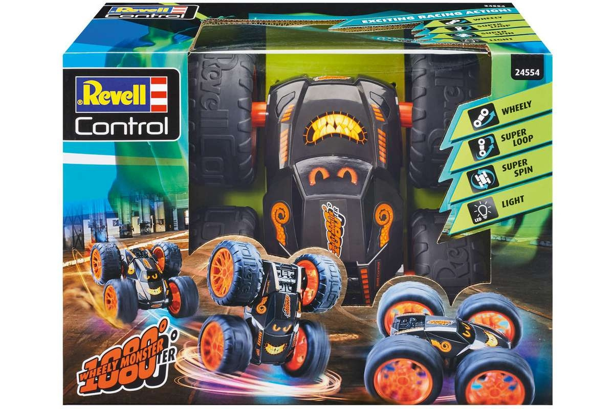 Whether you're a beginner looking to dive into the world of remote control cars or a seasoned pro looking for the next adrenaline rush, the RC Stunt Car Wheely Monster was made for you! With its outstanding features, realistic design and top-notch Revell Control quality, you won't be disappointed.