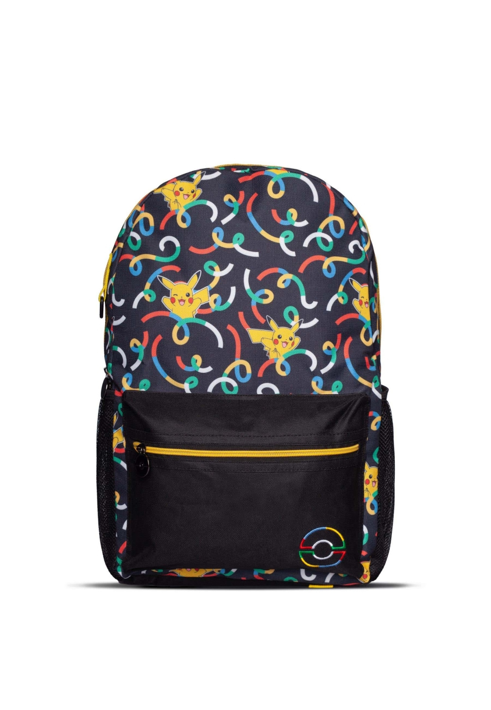 Skil dig ud fra mængden med denne livlige og unikke Pokémon rygsæk. Det farverige sublimeringstryk dækker hele stoffet på denne taske og vil helt sikkert tiltrække sig opmærksomhed fra andre Pokémon fans. På frontlommen finder du et 3D-broderi af den ikoniske Pokéball. Andre grafiske elementer er de prægede Pokéball-metaltrækkere og matchende gule bånd og lynlåse. Denne Pokémon rygsæk har også et forstærket laptop-sleeve på bagpanelet til din laptop.