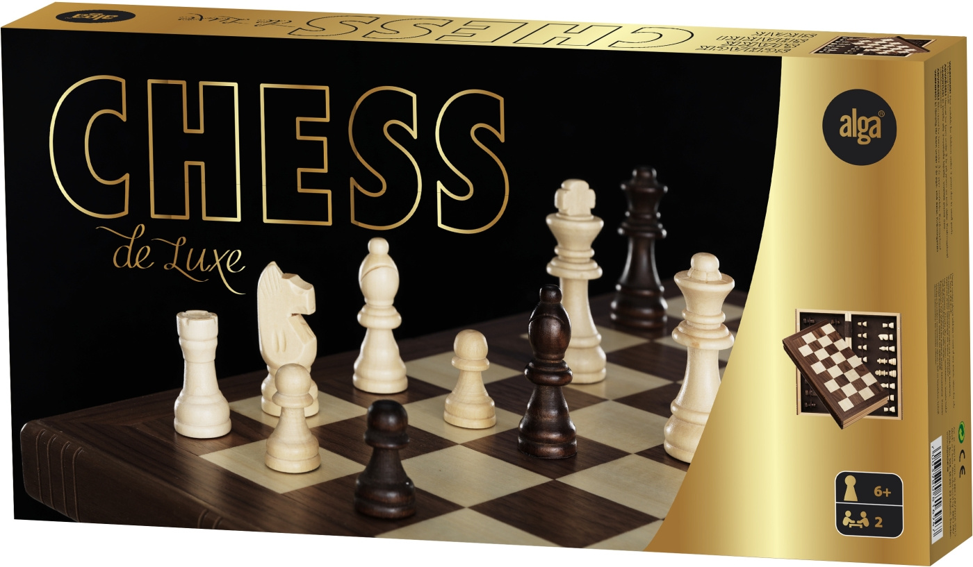 Chess Deluxe is a stylish chess game with a game board that conveniently folds up for storing the pieces.