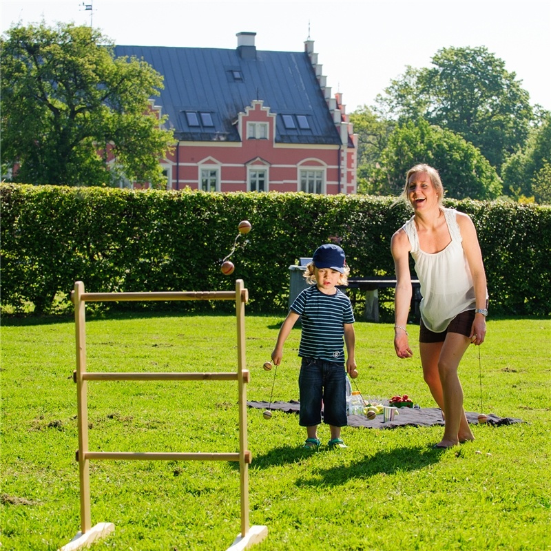 - Bollarna har en diameter på 4,6 cm och har 30 cm långa rep