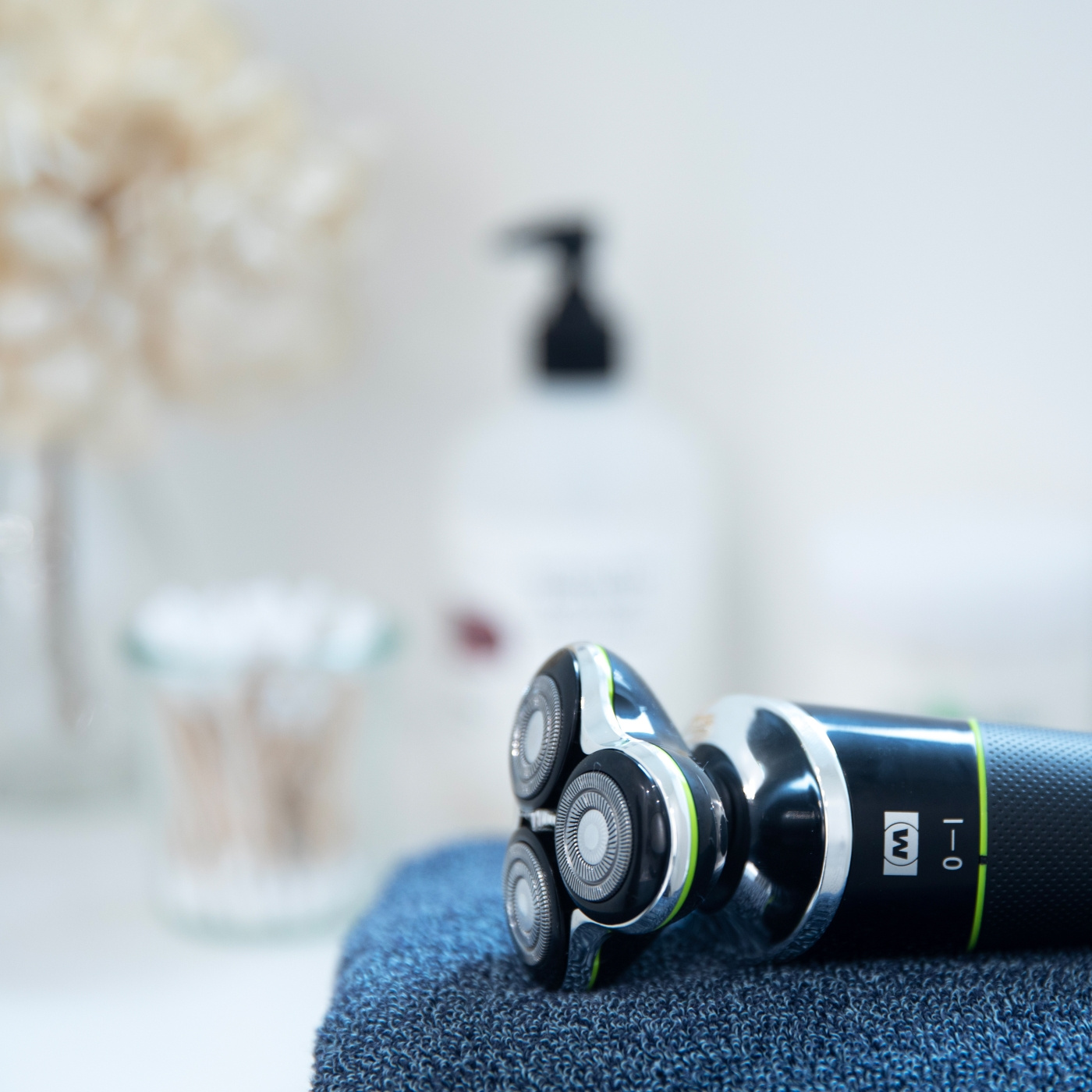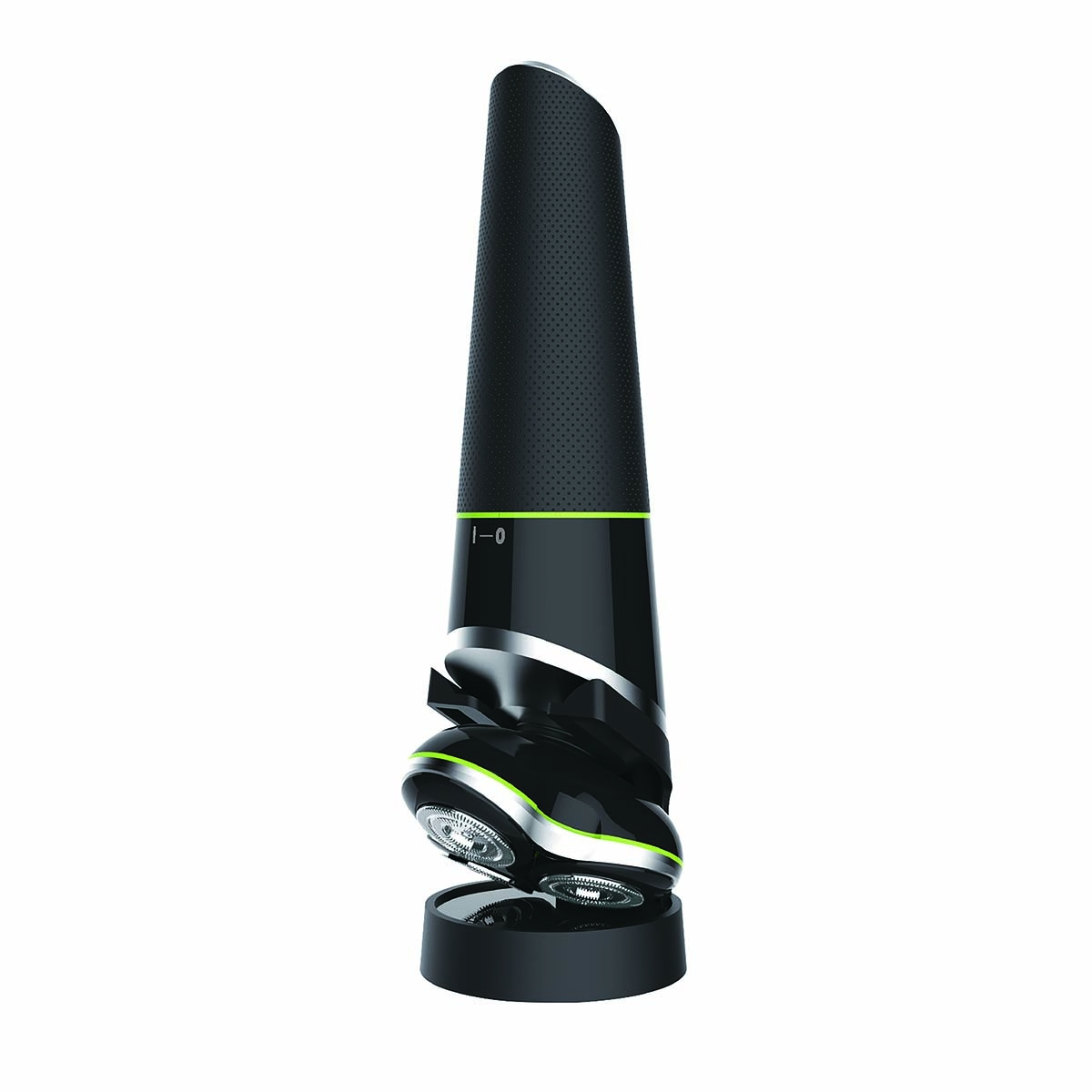 ledningsfri barbering. Der medfølger en opladningsholder. Bladene er lavet af rustfrit stål og rengøres med den medfølgende rengøringsbørste.