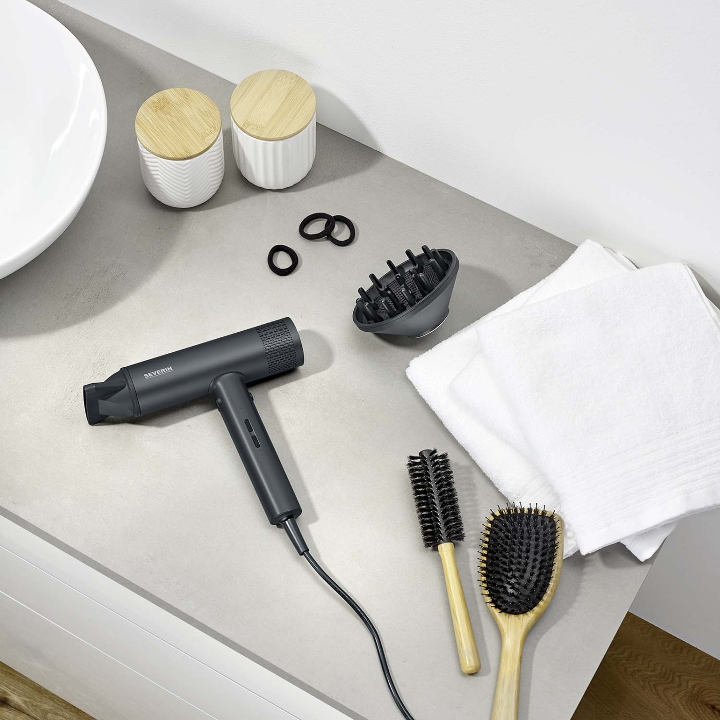Hårtorken levereras med en magnetiskt löstagbar koncentrator för exakt styling. Dessutom ingår en diffusor som möjliggör skonsam torkning och voluminösa lockar, vilket ger dig en personlig och anpassad stylingupplevelse.