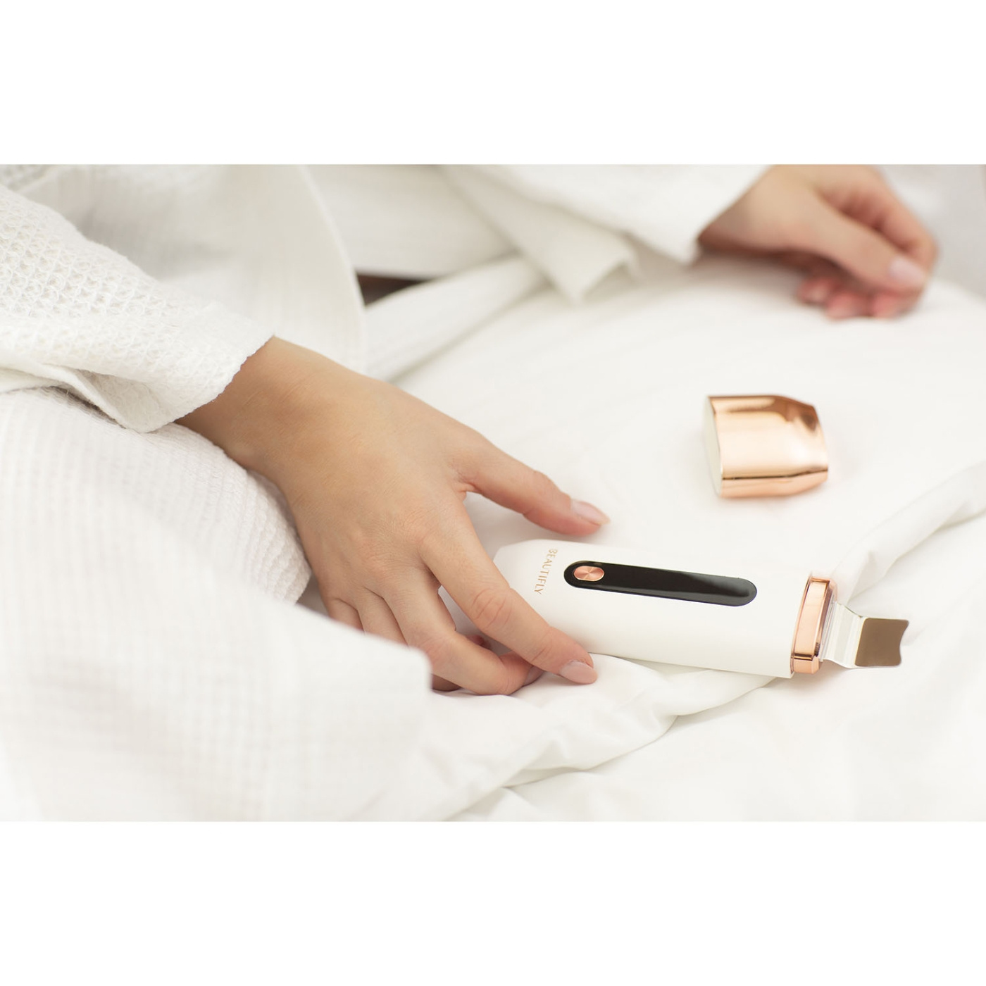 En multifunktionel hudplejeenhed fra Beautifly til rensning, hydrering og regenerering.