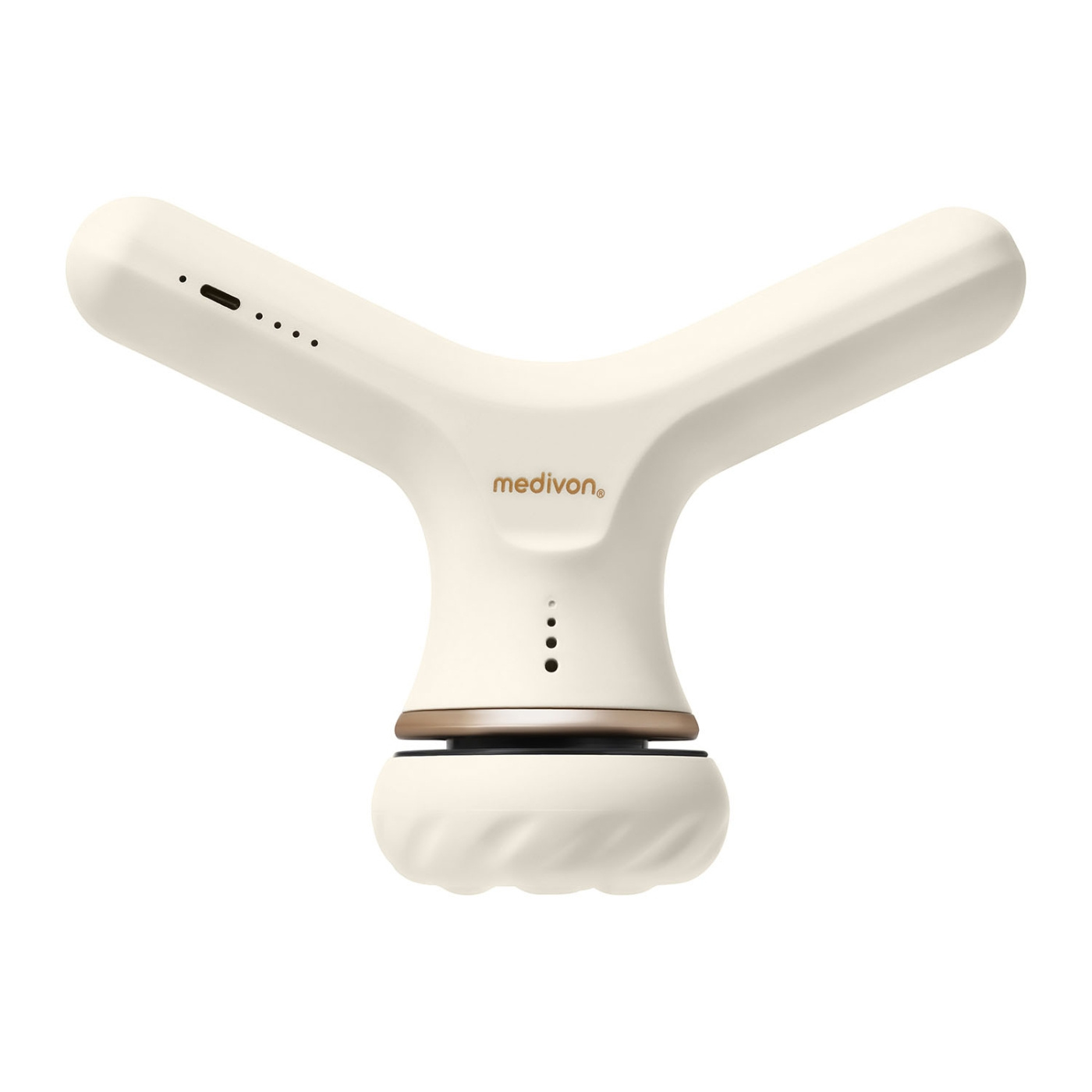 Medivon Seraph Anti-Cellulite Massager er designet med en unik Y-form, der passer perfekt i din hÅnd og giver et sikkert greb og fuld kontrol under brug. Det har fire intensitetsniveauer, sÅ du kan skrÆddersy massagen til dine behov, uanset om du Ønsker en opstrammende kropsmassage eller en afslappende muskelbehandling. Massageapparatet leveres med fire udskiftelige massagehoveder, der hver isÆr er designet til forskellige typer massage, hvilket sikrer alsidighed og effektivitet.