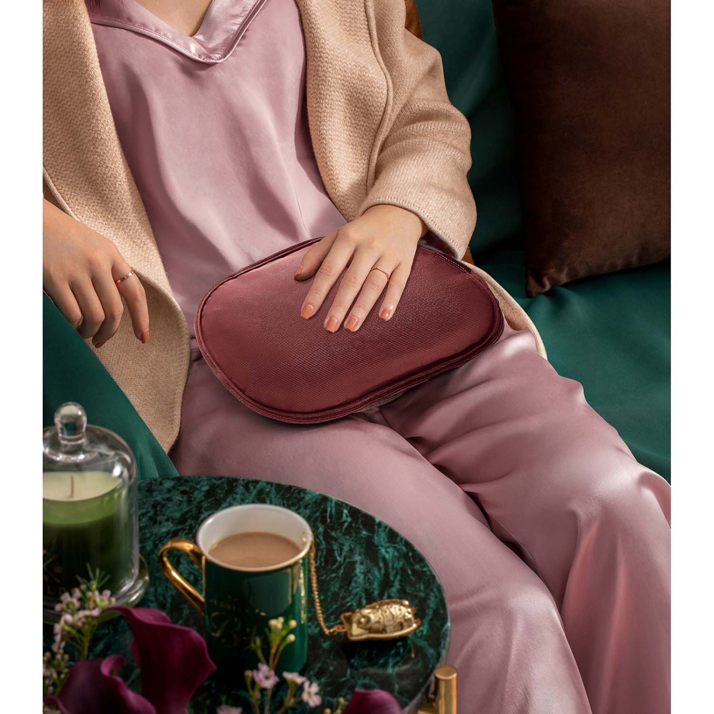Velvet-värmekudden anpassar sig efter olika behov och lindrar ledvärk, menstruationssmärtor, muskeltrötthet eller spänningar. Tack vare sin ergonomiska design kan den användas i olika positioner, vilket gör den idealisk för alla delar av kroppen.