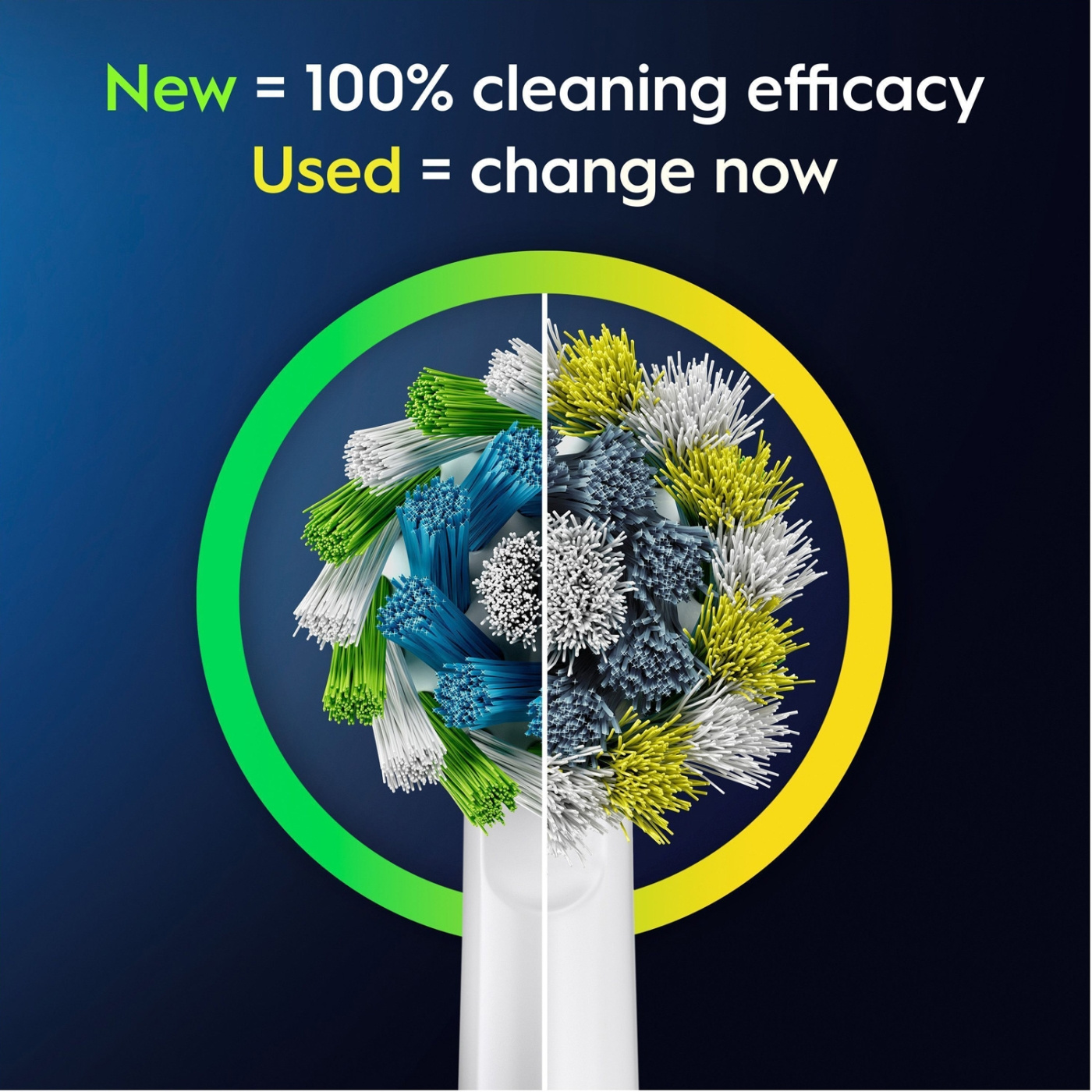 - Oral-B:s borsthuvud bleknar från grönt till gult baserat på individuell användning, vilket indikerar när det är dags att byta, för att - bibehålla 100 % rengöringseffekt
