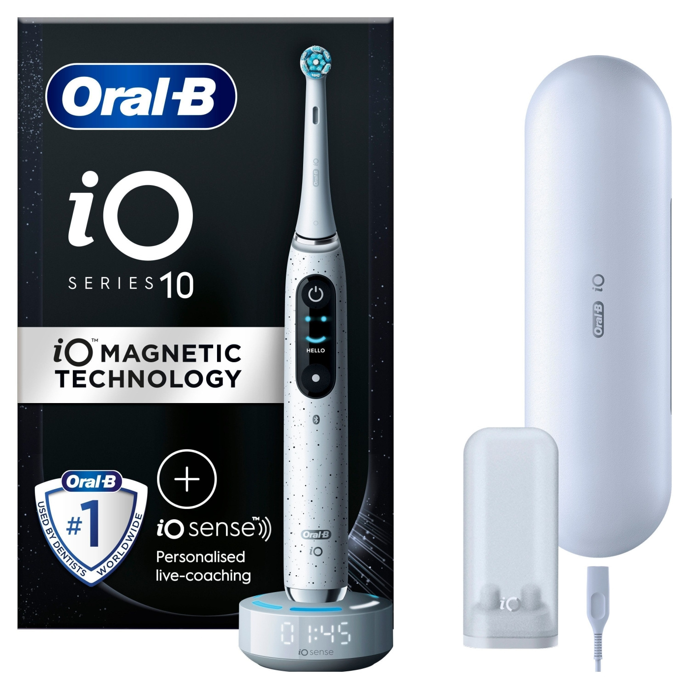 Den elektriske tandbørste iO 10 med den revolutionerende iO Sense-smartoplader tilpasser din tandbørstning med feedback i realtid og guider dig til perfekt dækning, børstetid og børstetryk, så du får en dejlig ubesværet rengøring. Den kombinerer blide mikrovibrationer med et unikt tandlægeinspireret rundt børstehoved, så du får fornemmelsen af en professionel, rensende rengøring hver dag. Udskift dit Oral-B iO-tandbørstehoved hver 3. måned for at opnå de bedste resultater.