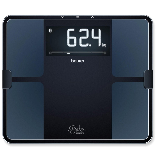 Denne kropsanalysevægt fra Beurer viser dig ikke kun din kropsvægt - den beregner fedtprocent, vandprocent, muskelprocent, knoglemasse, BMI og kalorieforbrug for dig. Med en kapacitet på op til 200 kilo, ekstra stort ståområde på 30 x 35 centimeter og et moderne sort XXl-display på 69 x 149 millimeter kan du nemt følge din krops sundhed. Desuden har den et ekstra tykt ITO-belagt sikkerhedsglas på 8 millimeter, så elektroderne i stål er fjernet. Indium Tin Oxide ligger som et tyndt lag ledende film på hele overfladen.